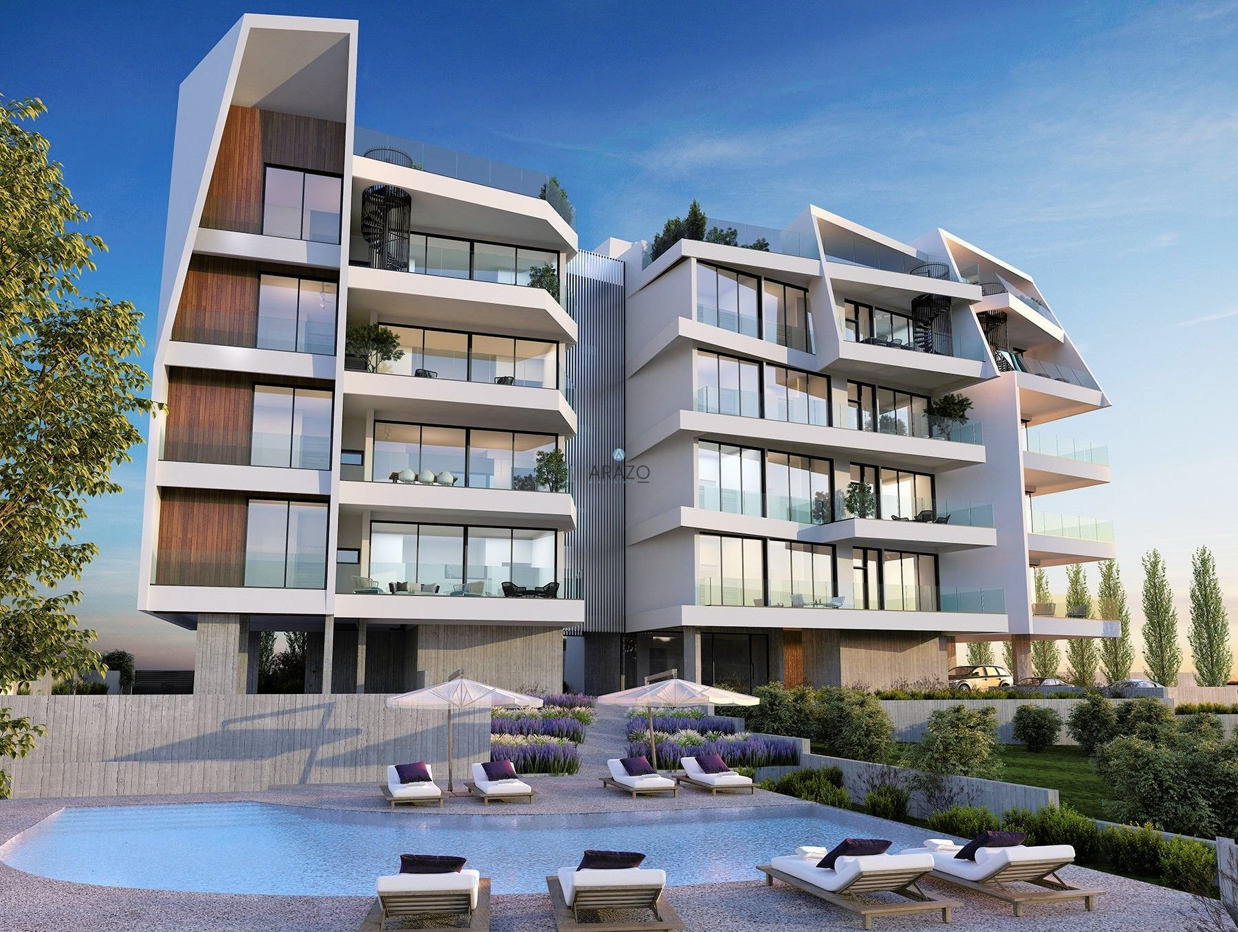 With its unique geometric lines of dazzling white and wood accents, is an eye-catching apartment building set in Limassol’s Germasogeia area. Residents can take advantage of Germasogeia’s easy access to the highway, as well as its close proximity to Limassol’s buzzing shopping and business hub, which boasts high-end shops, cafés, fine dining establishments and luxury hotels. At the same time, they can remain secure in the knowledge that they are sheltered in one of the city’s safest residential areas. In the vicinity are local schools, banks, and other necessities, all within easy reach, as is Limassol’s famous azure coastline.