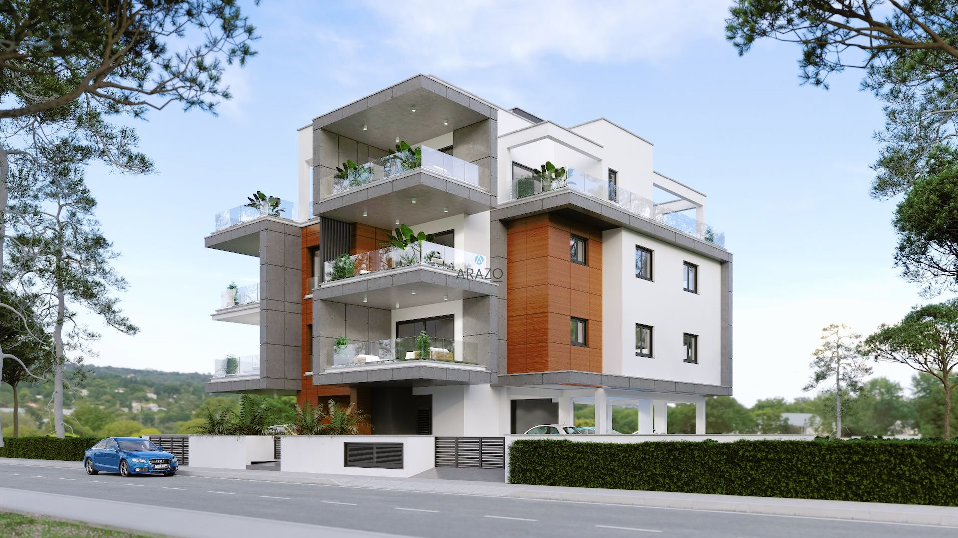Large, corner balconies feature glass railings, serving up beautiful views of the Limassol cityscape. Each of the 5 apartments is evenly spaced out across three floors, with one three-bedroom and one two-bedroom apartment on each floor, and a large, three-bedroom penthouse on the third floor. Each of the three-bedroom apartments boasts an en-suite master bedroom.