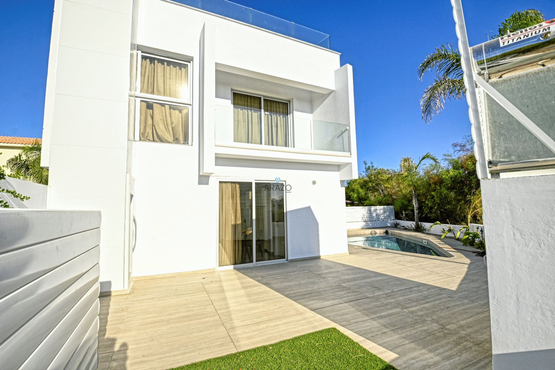 Sunbathing area with ample space for outdoor furniture and sunbeds.