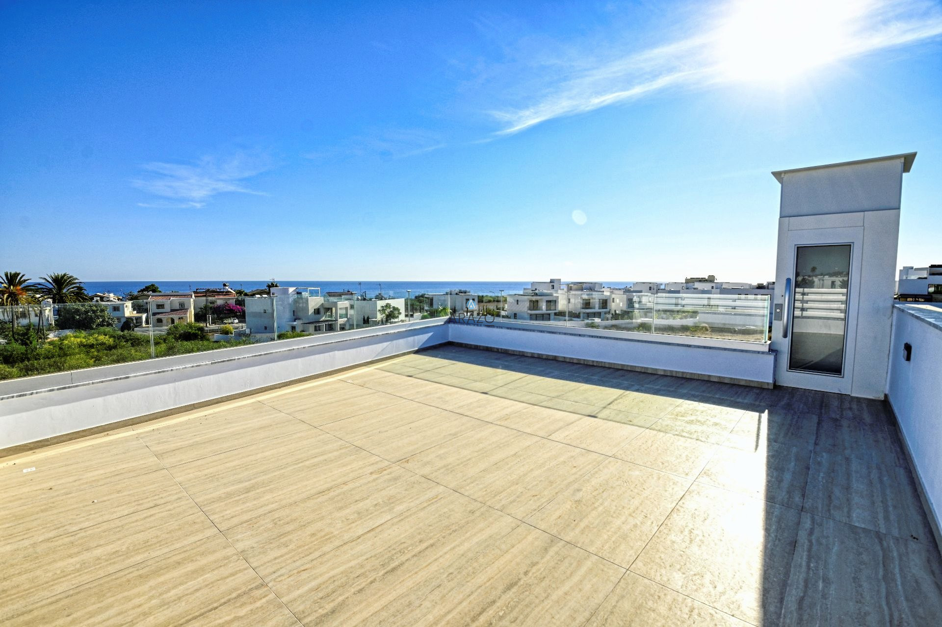 Private lift to the roof garden offering breathtaking panoramic sea views – perfect for sunsets, BBQs, or evening relaxation.