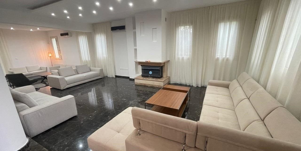 A Stunning and Grand Villa on two plots for sale in a prime area of Makedonitissa, Engomi. The Ground Floor consists of an office, two separate living rooms with a fireplace, separate TV room with a fireplace, dining room with a fireplace, kitchen and a guest toilet.