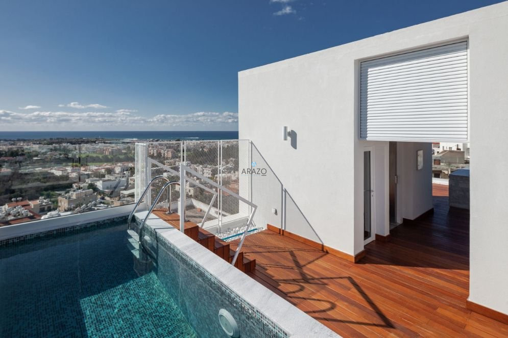 The highlight of the villa is the rooftop garden with a swimming pool and BBQ area, offering a perfect space to entertain guests or relax and take in the breathtaking views. The location is unbeatable, just 200 meters from the Town Hall, schools, government offices, and the Paphos central square.