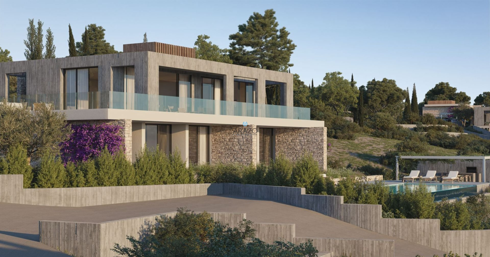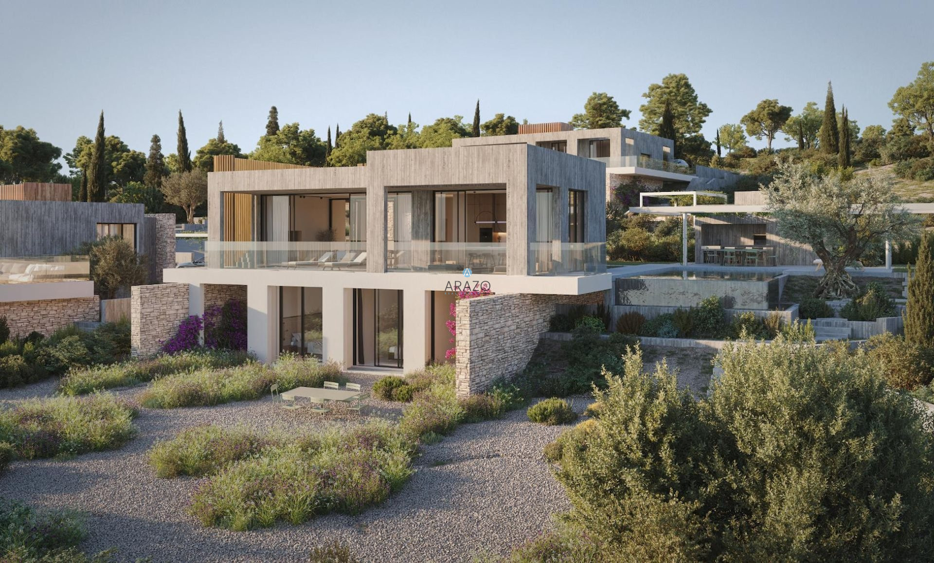 The development is just a 10-minute drive away from the charming St George fishing harbor and its stunning beach cove. It is also just a 5-minute drive from the famous Corel Bay Beach, which has been awarded a blue flag, as well as from the small town's bars, restaurants, and shops. Just as pearls are highly valued for their beauty and rarity, this development, with its proximity to renowned landmarks and breathtaking views, is truly a pearl of the Mediterranean.