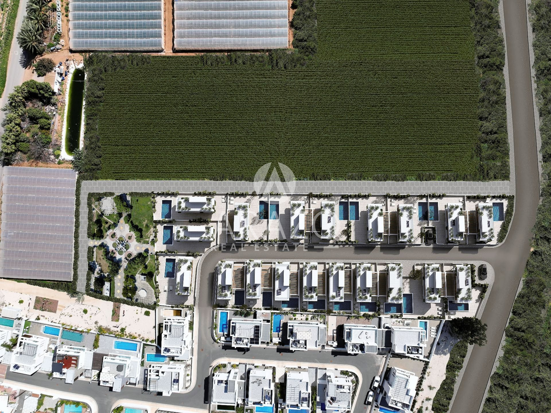 Comprising nineteen luxury three-bedroom residences, each boasting a private swimming pool, roof garden, and garden space, following Villas epitomise sophistication and innovation. Crafted with meticulous attention to detail, these residences blend minimalist design with natural elements, creating an ambiance of timeless elegance. The seamless integration of indoor and outdoor spaces ensures year-round enjoyment of the terrace and garden, making these villas an ideal choice for both permanent residency and holiday escapes. With its tranquil yet centrally located setting, project offers residents a perfect balance between relaxation and convenience. Its proximity to the bustling tourist hub of Pernera, with many restaurants and services, as well as easy access to the highway, further enhances its appeal.