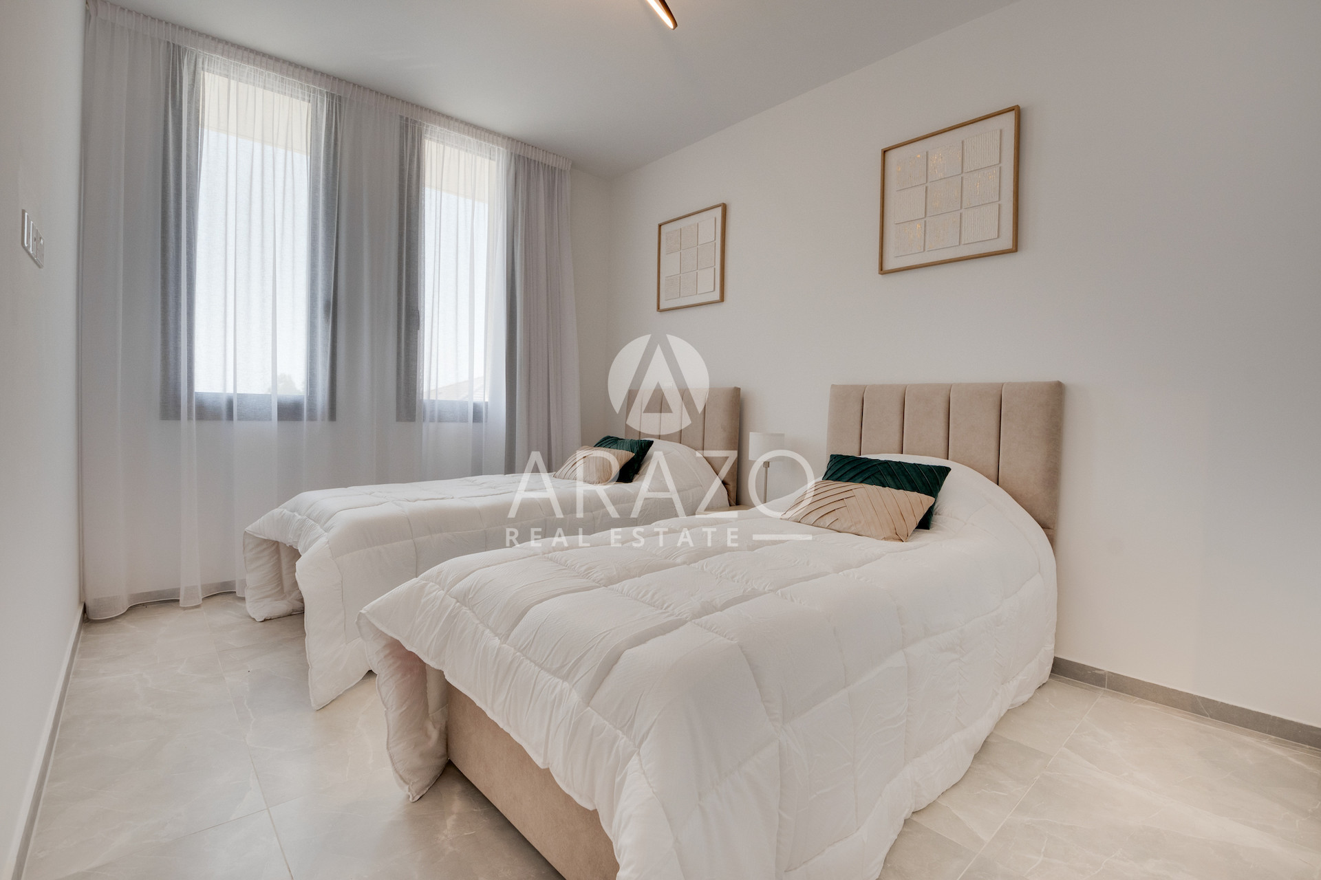 This key ready, fully furnished house offers comfortable living with an internal space of 123.5 m². It features three spacious bedrooms and two modern bathrooms, making it ideal for families or those seeking extra space. The home is designed for convenience and style, with high-quality finishes and an efficient layout.