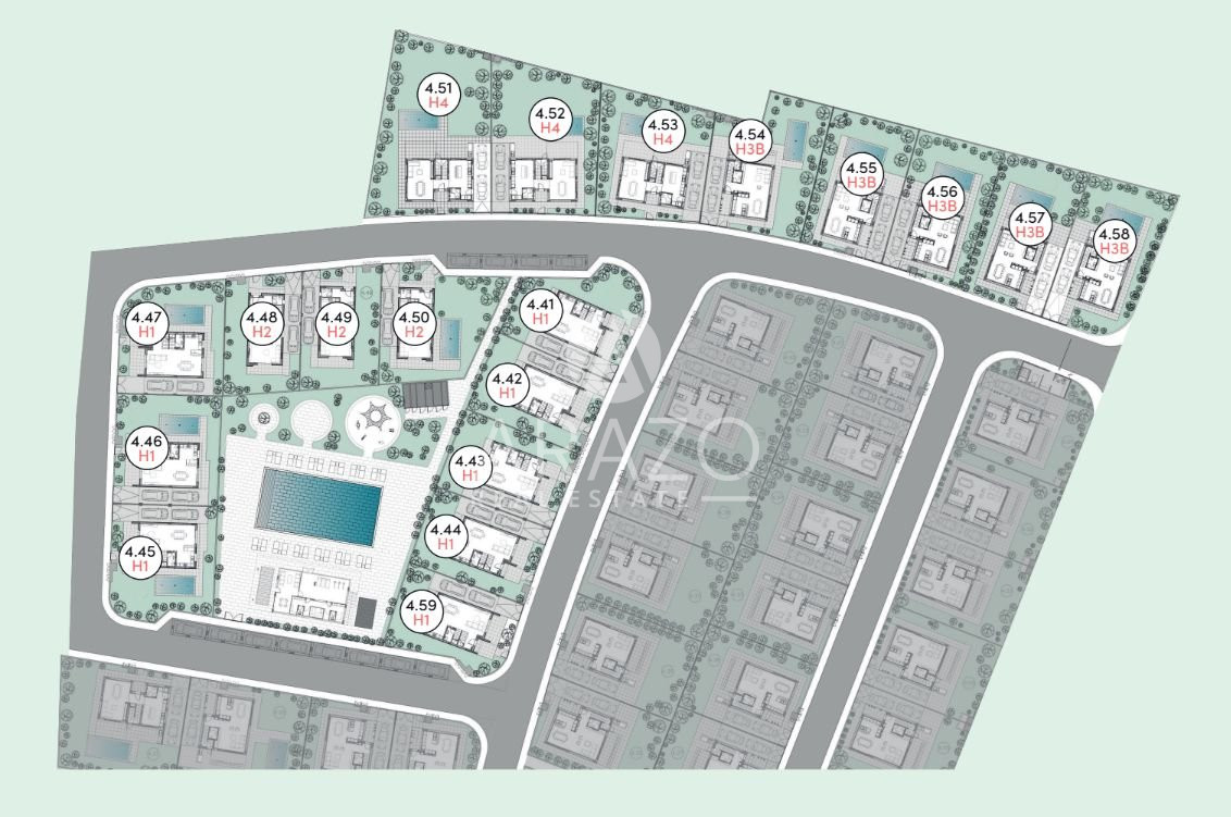 A large gated community complex with common and private swimming pools, gorgeous landscaped gardens and overlooking stunning views of a natural environment only in 300 meters to endless beaches The 89 villas establish the standard for premium living with it’s warm minimalism interiors and impressive indoor facilities for permanent living.