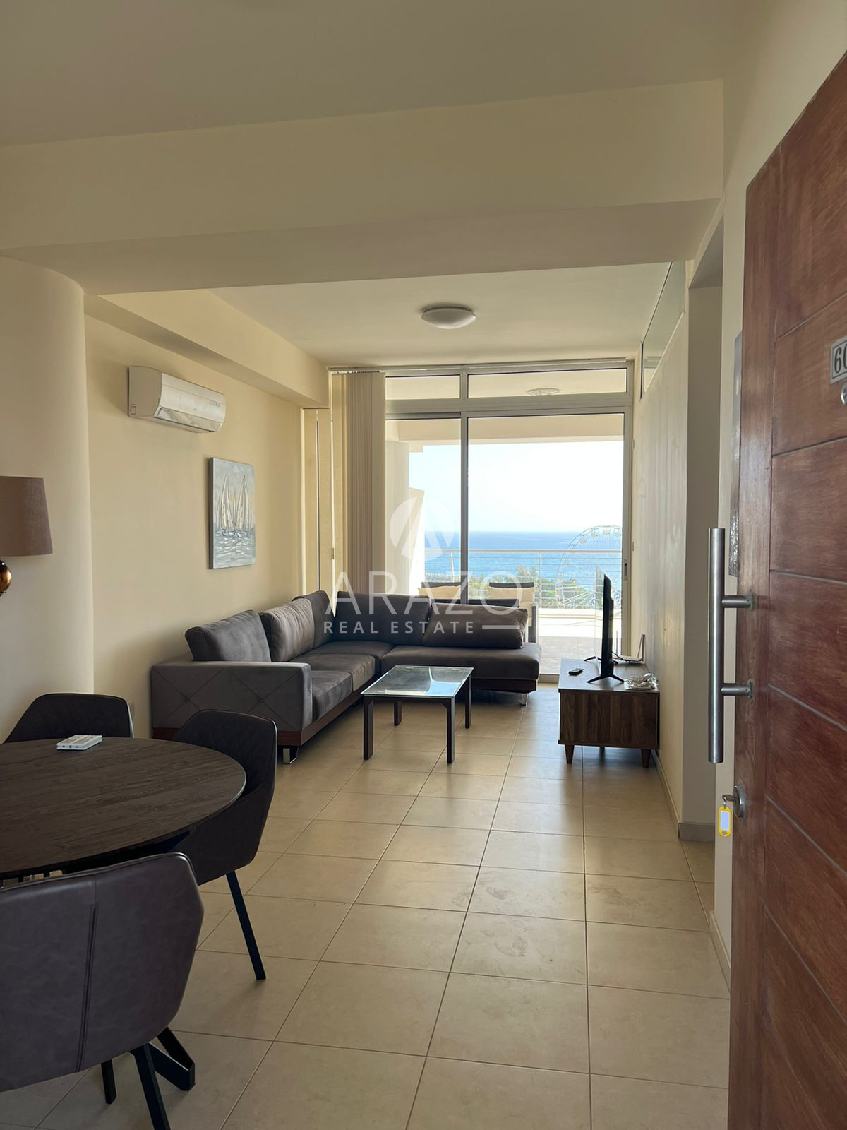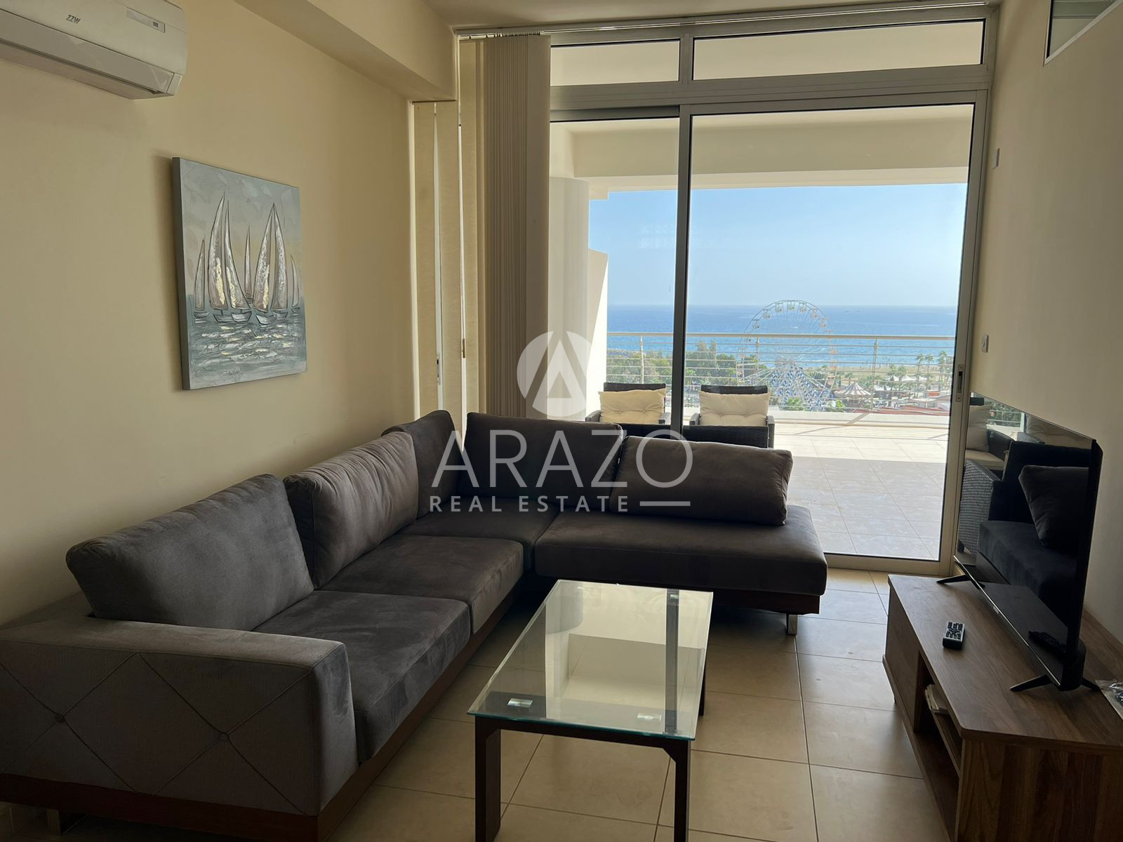 The apartment includes two well-sized bedrooms, making it an ideal choice for couples or small families. The single bathroom is efficiently laid out and easily accessible from both bedrooms and the living area. Large windows provide plenty of natural light, with striking city views and a partial sea view that adds a touch of serenity to your everyday routine.