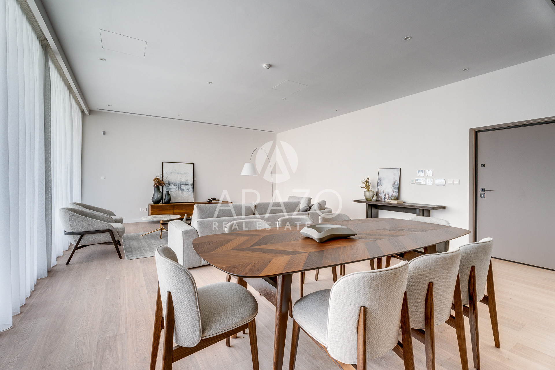 The apartment features four generous bedrooms and three modern bathrooms. It comes fully furnished with tasteful, high-quality furniture, ensuring you can move in straight away without any hassle. An elevator provides easy access, making the home practical for all ages.