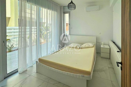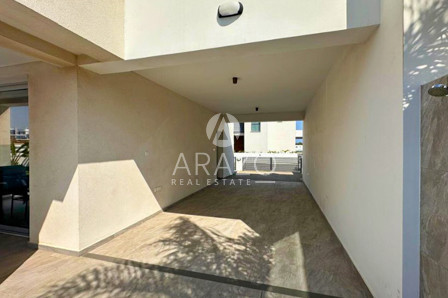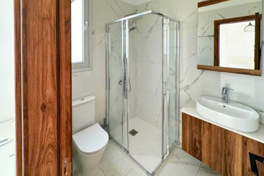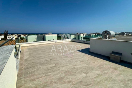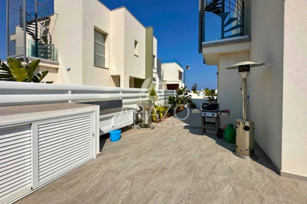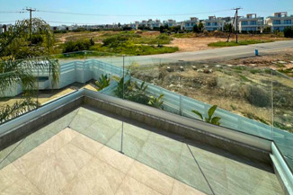 Outside, the villa boasts a large private garden that offers plenty of space for outdoor entertaining or simply enjoying the Mediterranean sunshine. The highlight of the outdoor area is the inviting private swimming pool, providing the perfect setting for leisurely swims or enjoying the warm, sunny climate of Cyprus. The expansive roof terrace offers breathtaking sea views, creating an idyllic spot for relaxing or entertaining while enjoying the picturesque surroundings.