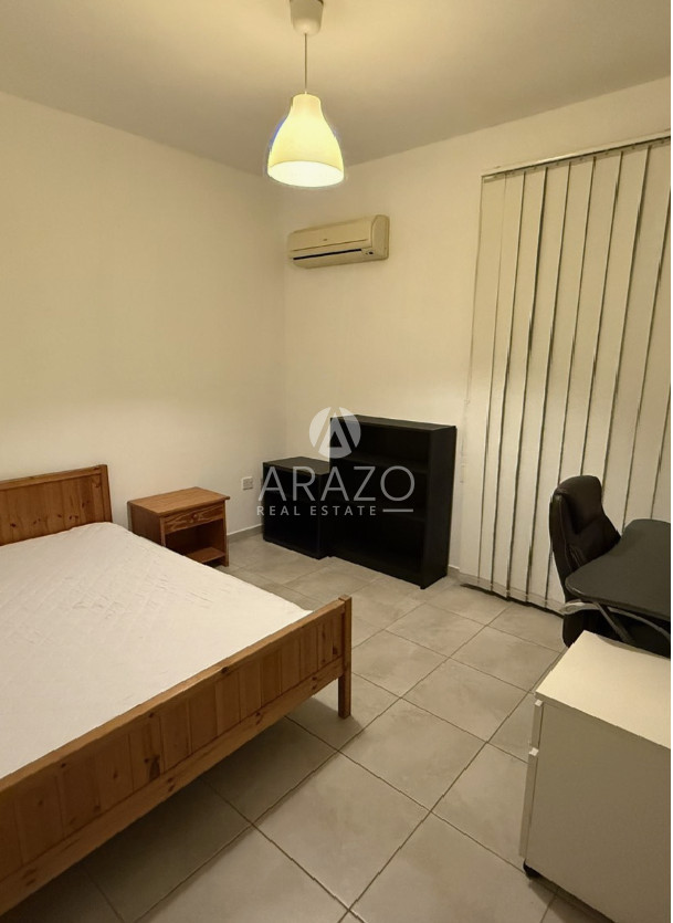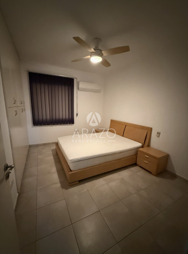 The apartment is fully furnished, featuring appliances, ample storage, and inviting bedrooms. Both bathrooms are functional and contemporary, ensuring everyday comfort. The building is equipped with an elevator, making access easy and convenient.