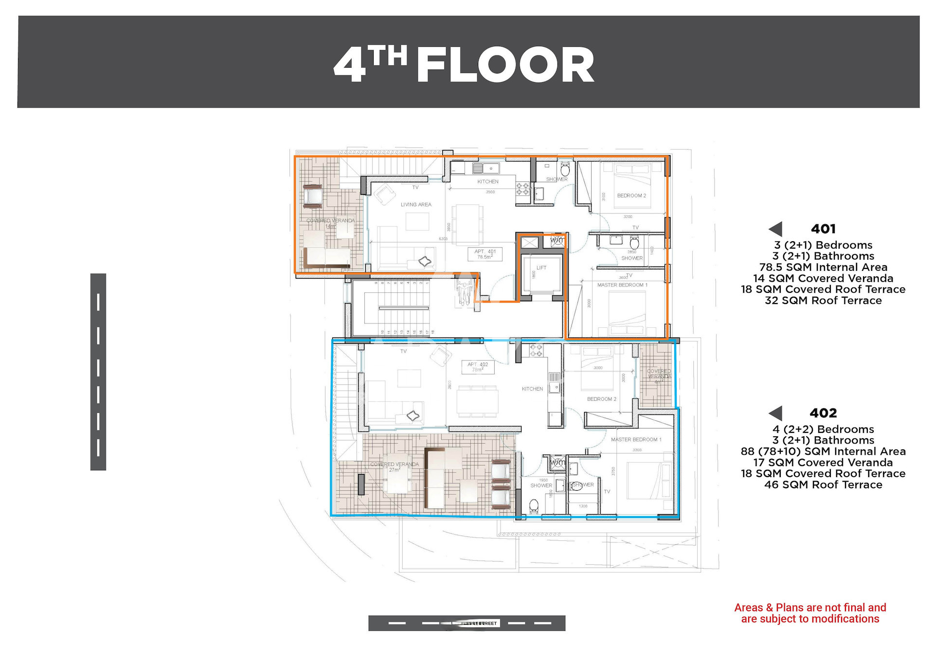 For sale is a penthouse apartment offering 78.5 m² of stylish internal space. This modern residence features three spacious bedrooms and three well-appointed bathrooms. The apartment is designed for comfort and convenience, with direct elevator access ensuring easy entry to your private top-floor retreat.