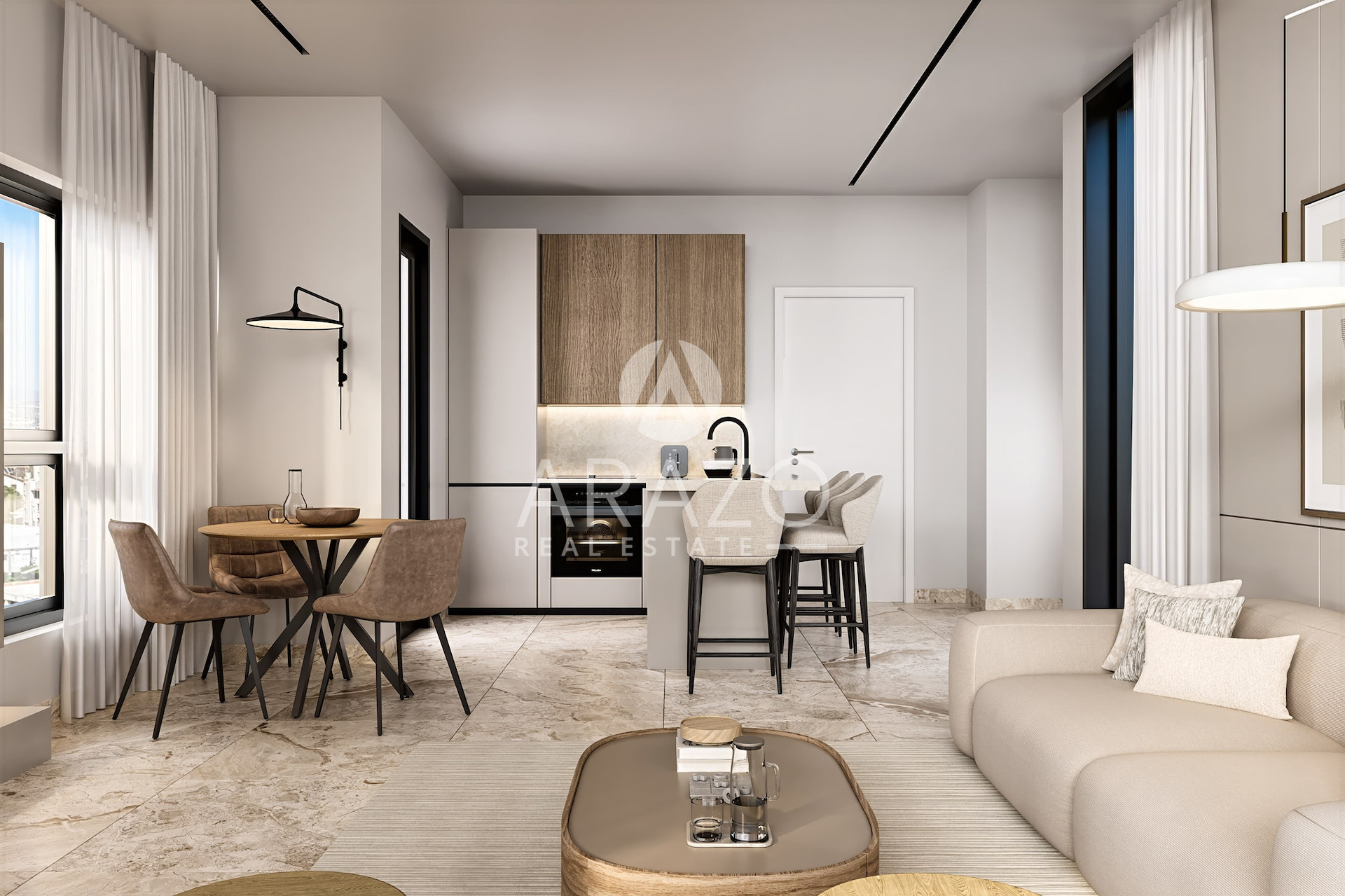The interior spaces focus on comfort, function and visual clarity. Living rooms feature wide openings that bring natural light and direct connection with the outdoor areas. The balconies offer space for dining, relaxing or enjoying open views of the city. Neutral colors, soft textures and quality surfaces create a calm environment that supports everyday living.