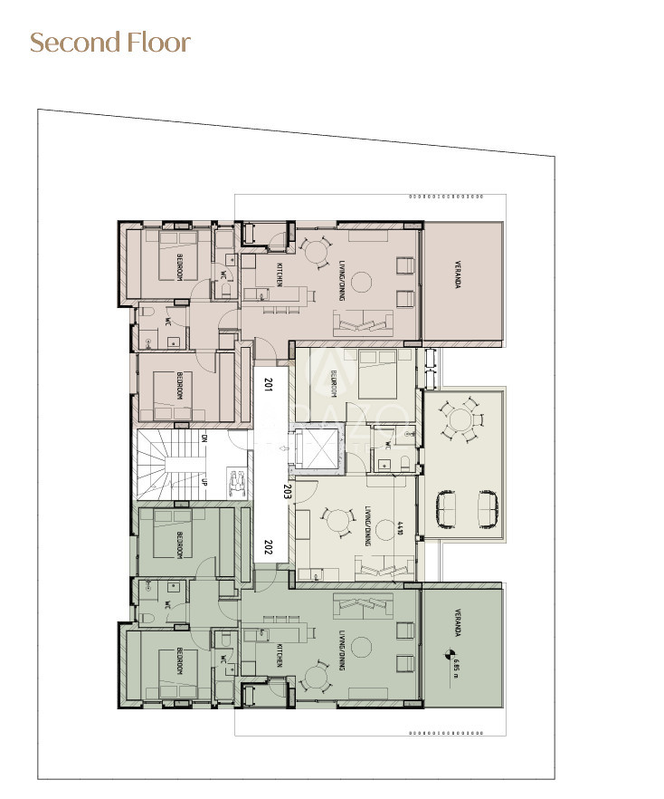 The development includes 7 apartments across 3 floors. Six apartments offer 2-bedrooms with well planned layouts. One apartment offers 1-bedroom with an efficient design, ideal for individuals who want a practical home in a central area. The low number of units keeps the building private and quiet. The building has also provisions for charging electrical cars for each unit.