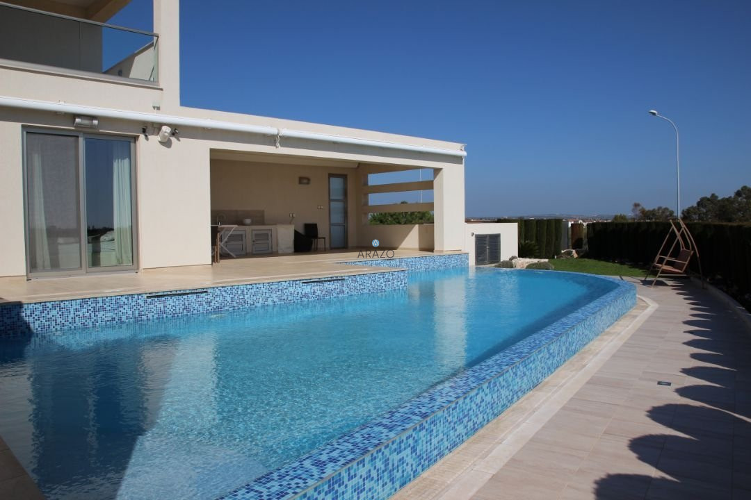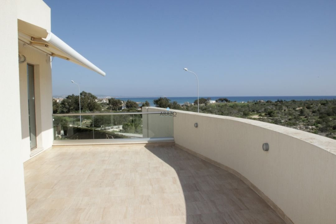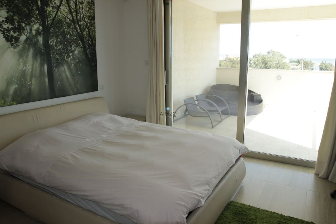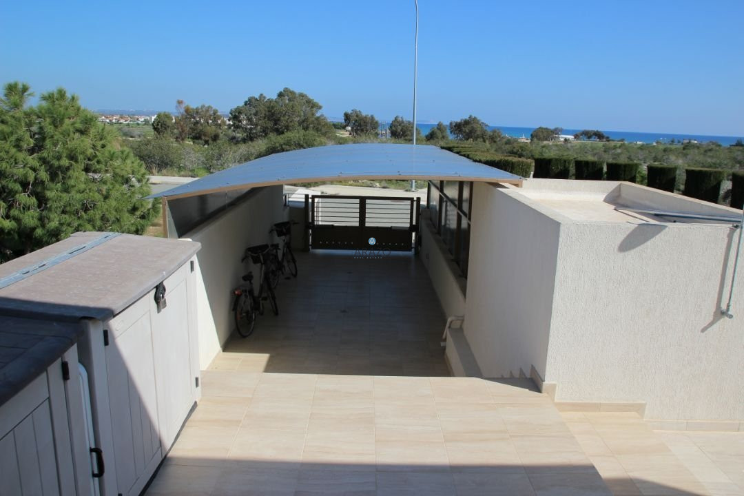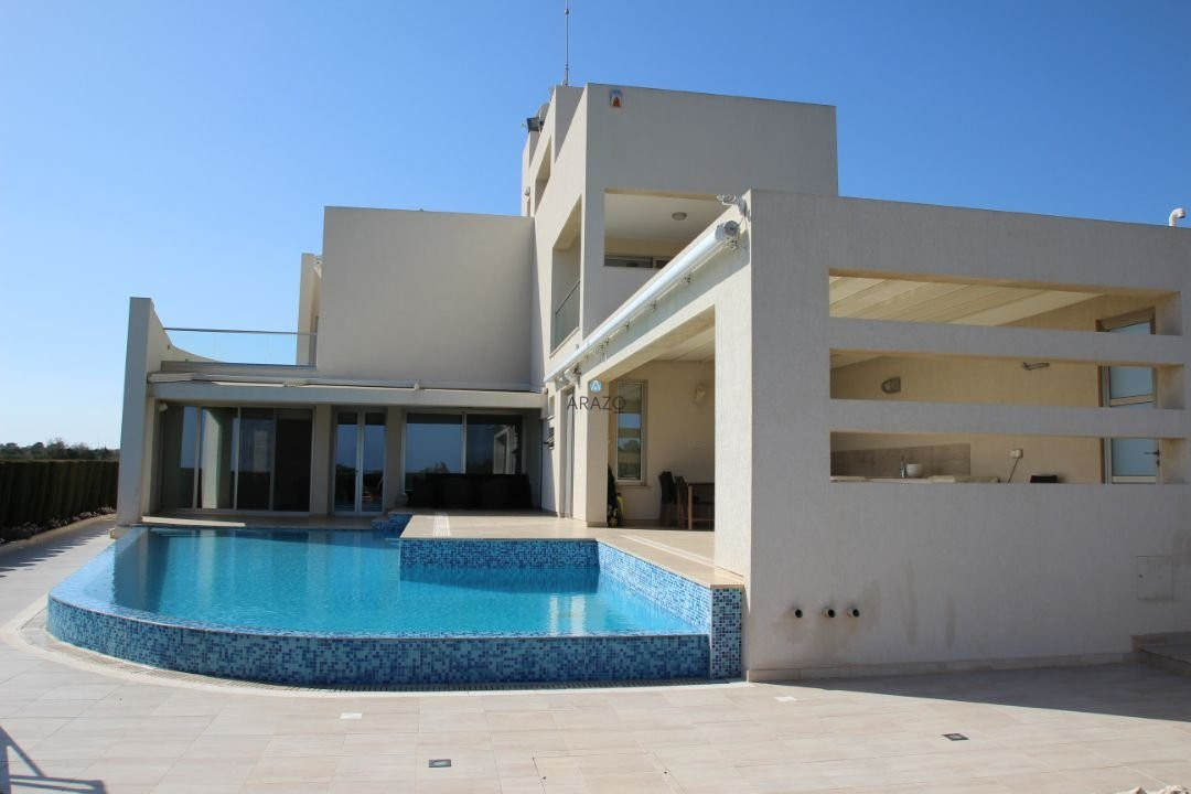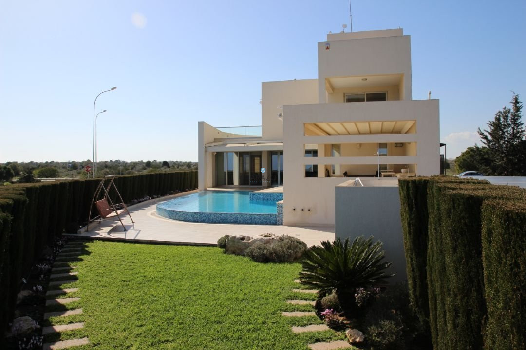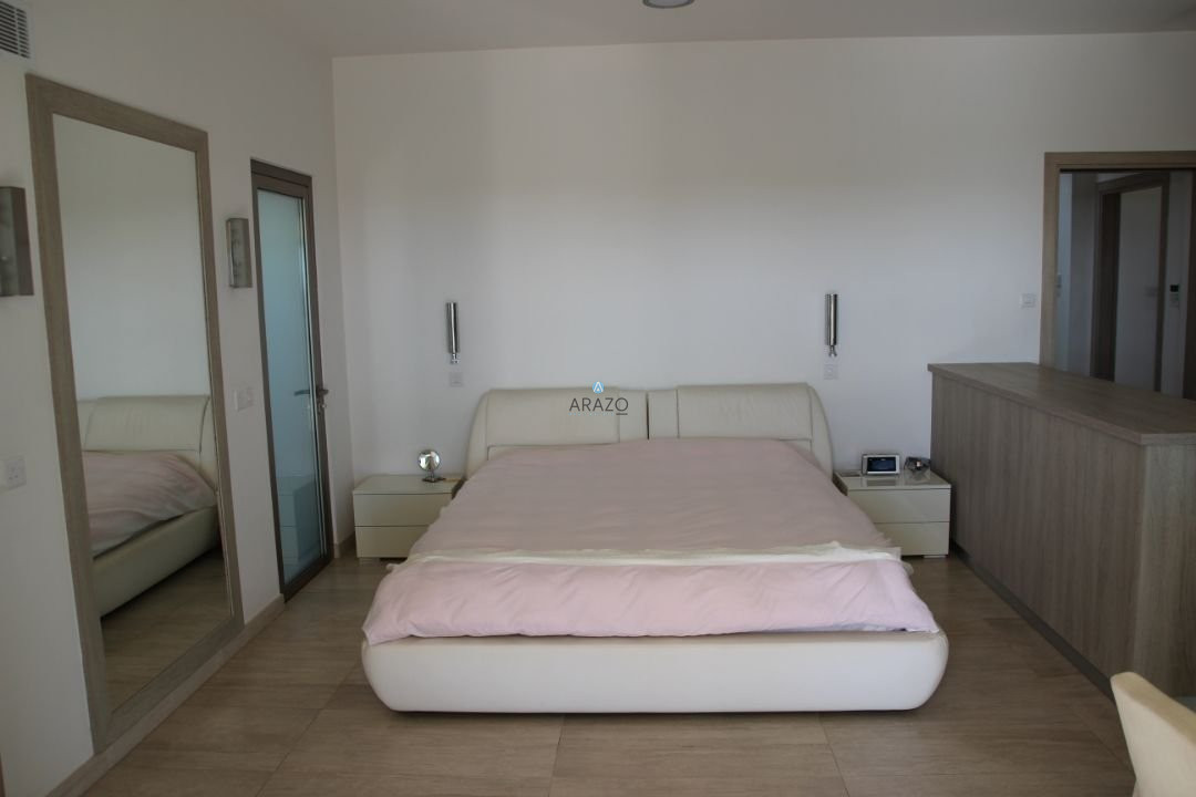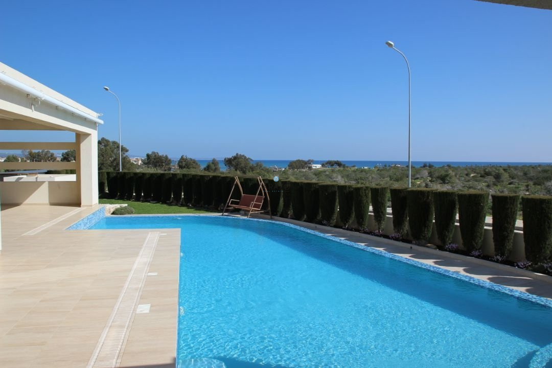 This modern seven bedroom villa was built in 2011 and is located in a unique location of Ayia Thekla. The property boasts a full central heating/cooling system throughout the internal areas. The main entrance from the secure gate leads into the vast living and dining area which has floor to ceiling windows to appreciate the views of the pool and local area beyond. There is a modern kitchen, guest wc and 2 guest bedrooms with direct patio door access to the pool at ground floor level. At lower ground floor level are a further 3 bedrooms, bathroom and kitchen facilities, private garden and laundry area.