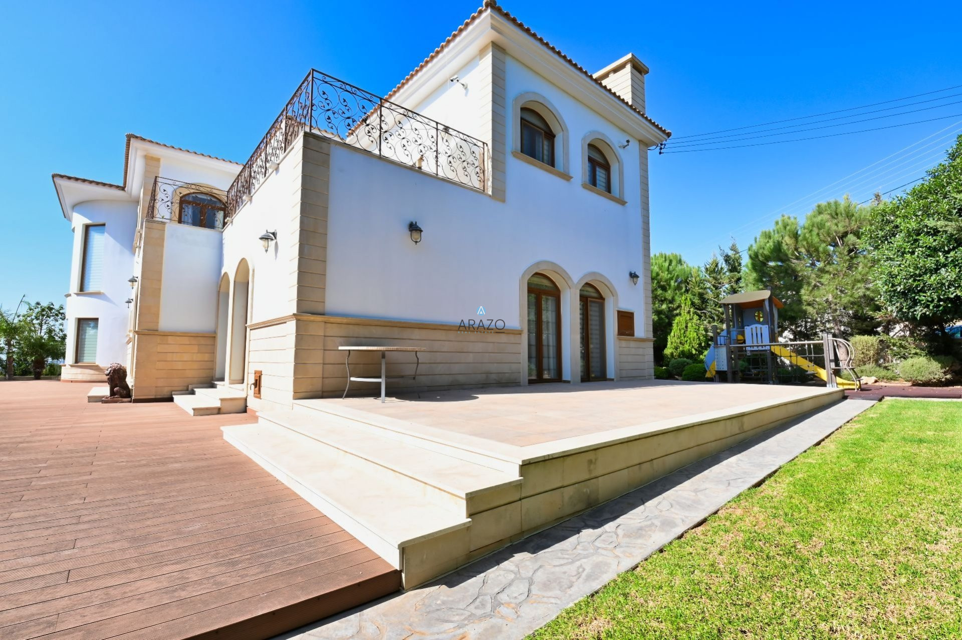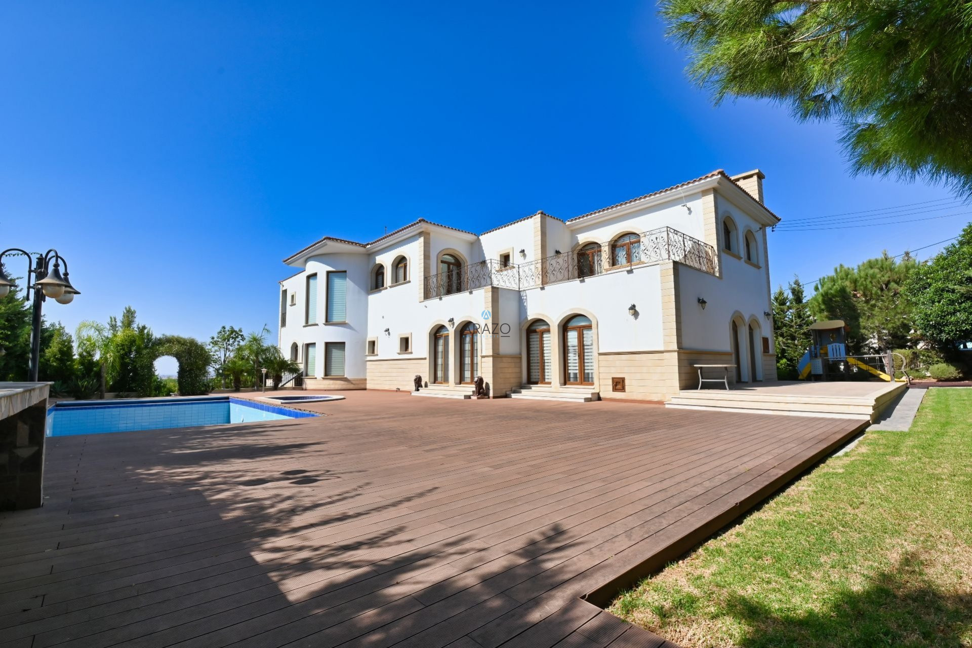 This property is set on a massive 3000m2 plot, and has everything you can imagine: gated entrance, children playground, amazing green garden with trees and flowers, private swimming pool, barbeque area.