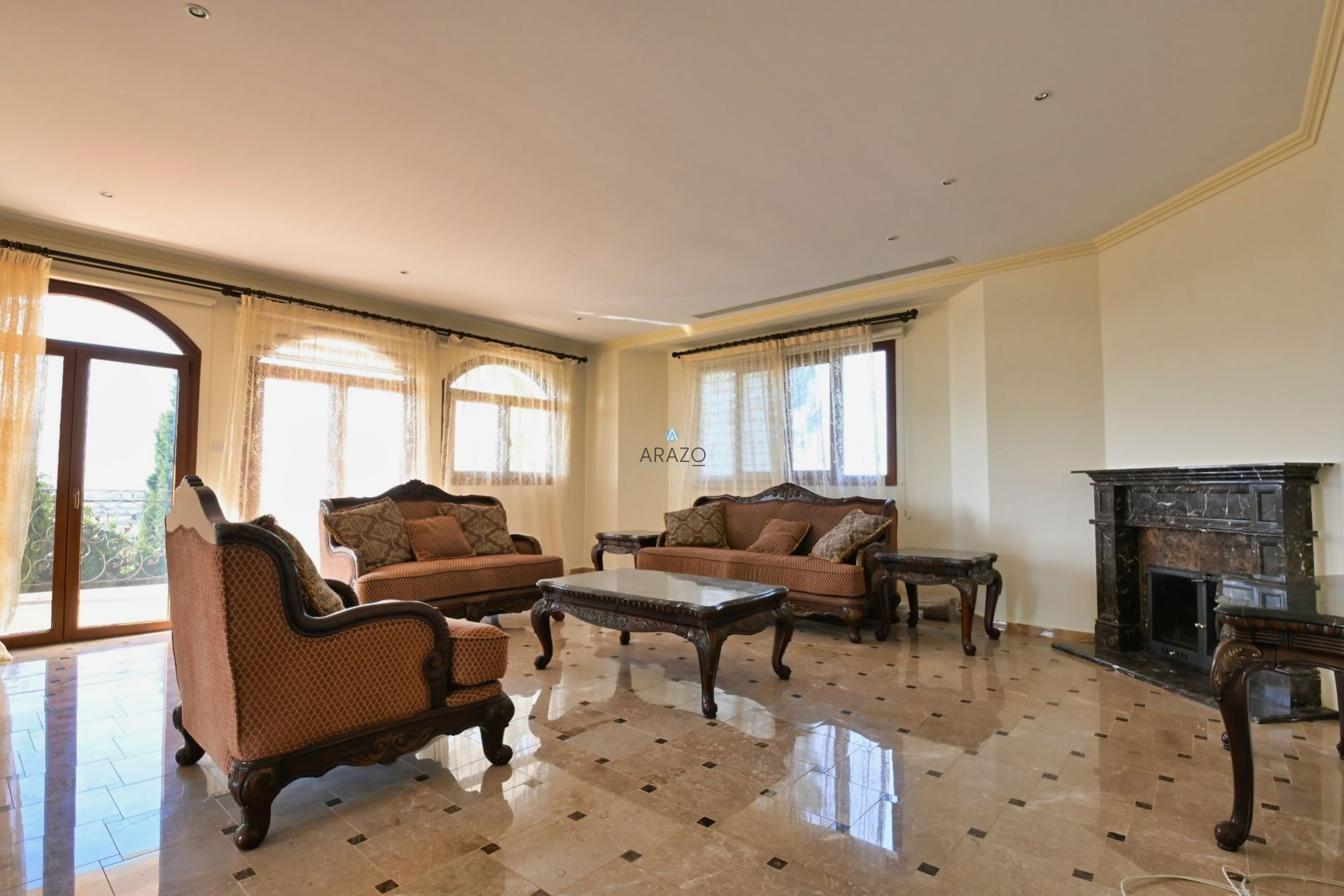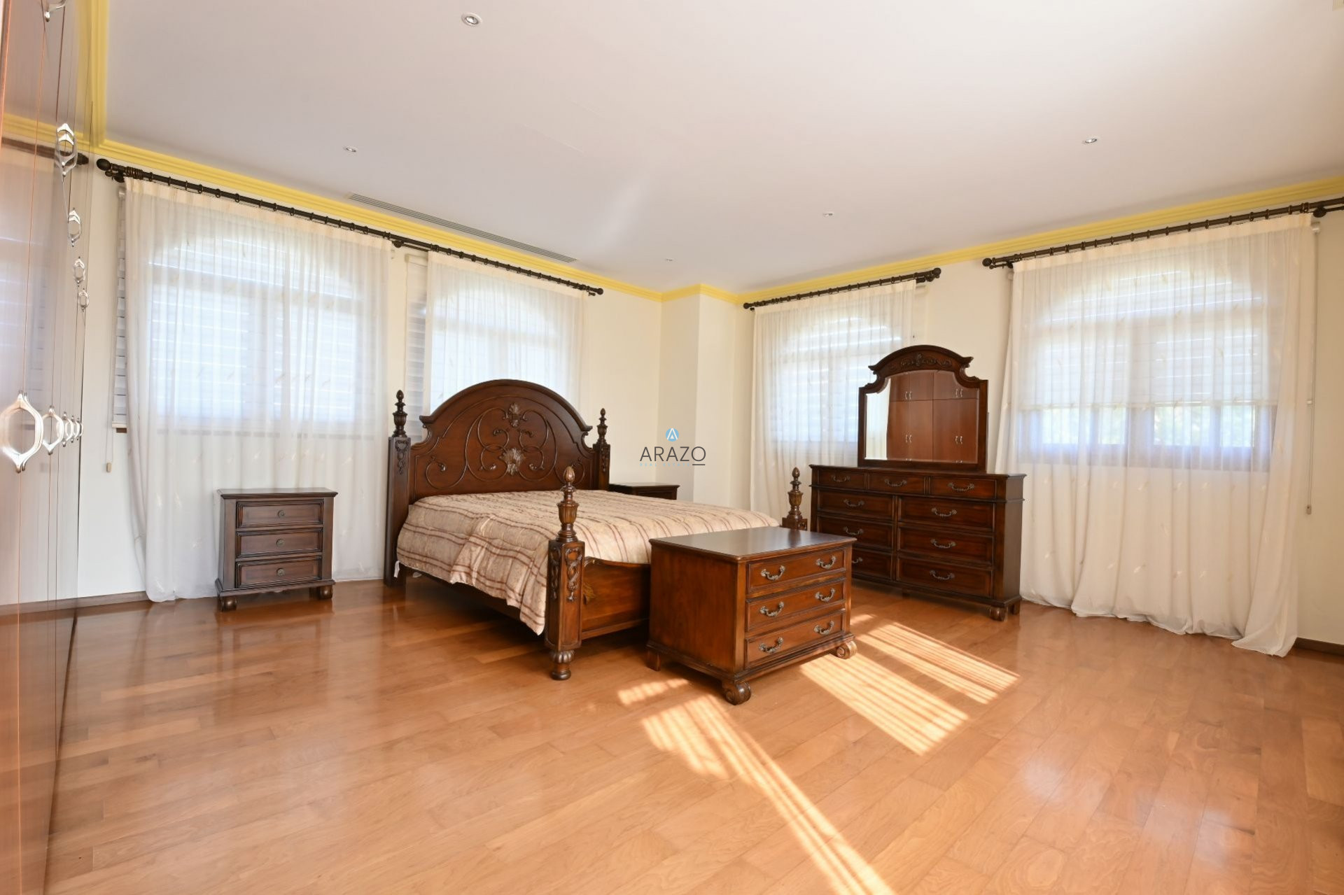 Villa is set on three floors: basement, which includes garage for at least 4 cars, and maid's room with a bathroom. First floor features: hall, spacious living room with fireplace, office (that could be turned into ground floor guest bedroom), kitchen, dining and sitting area. Second floor comprises of a spacious master bedroom, with separate bathroom and jacuzzi, huge walk in wardrobe, and veranda with breathtaking views, and another 3 bedrooms, all with en-suite facilities.