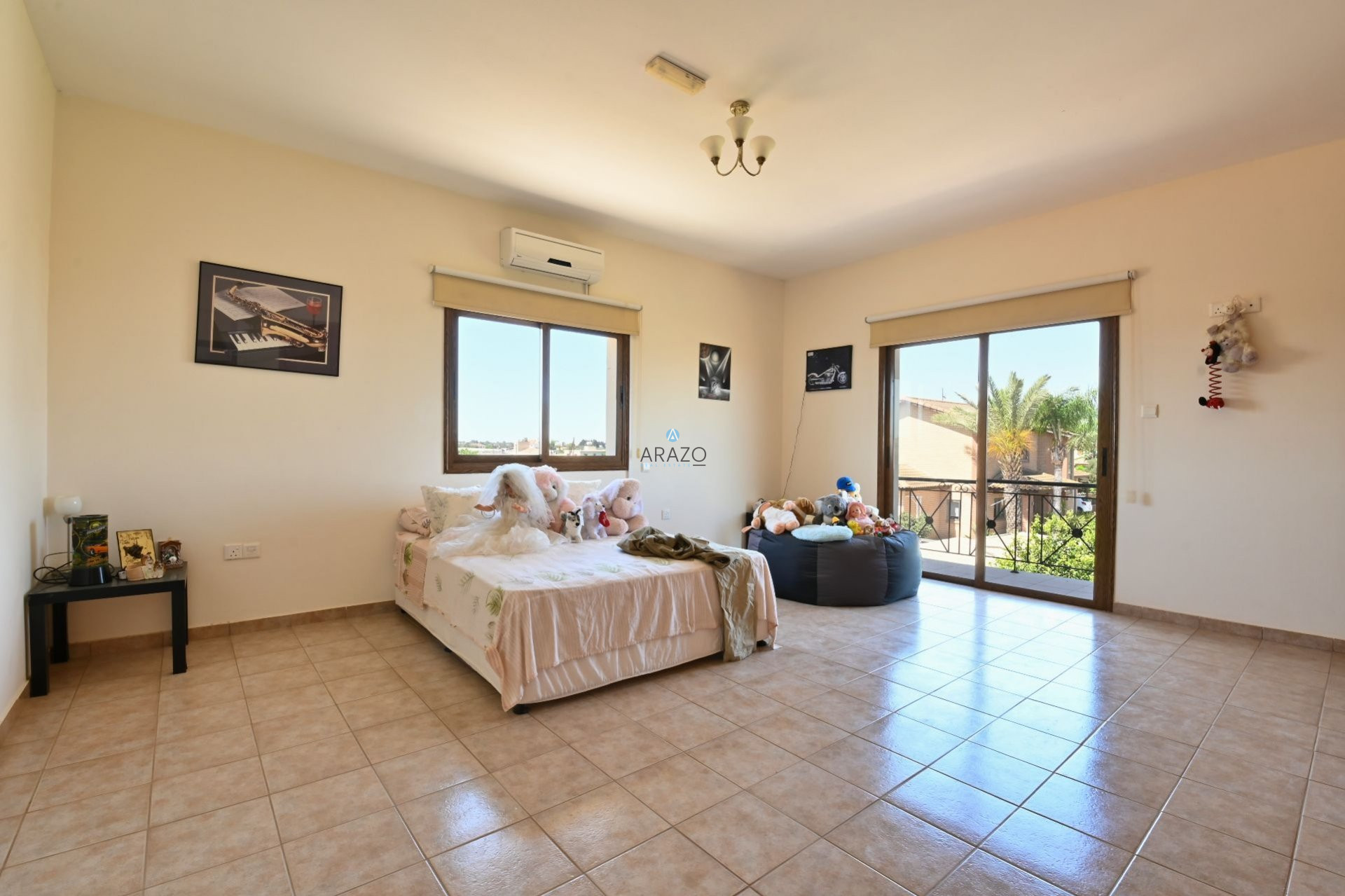 Upstairs there are 4 spacious and bright bedrooms with fitted wardrobes and air conditioning units, and sunny balconies.