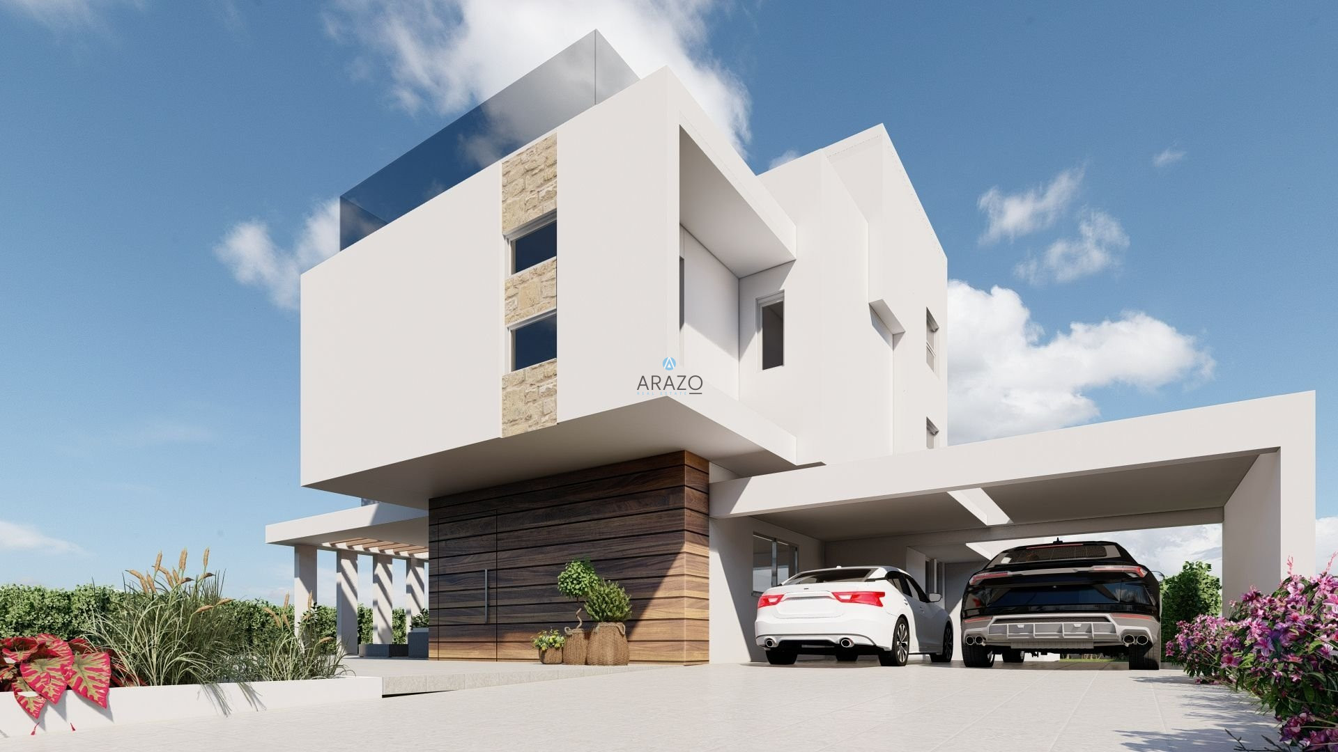 The ground floor hosts the open plan kitchen and living room, 1 en - suite bedroom and guest toilet. The remaining 3 en - suite bedrooms (master with walk-in closet) can be found on the first floor, all with sea view. There is also a small kitchenette/laundry area. From this level there is access to the substantial roof garden, with full sea view and sink/BBQarea, to enjoy Cyprus’s climate that favors outdoor living.