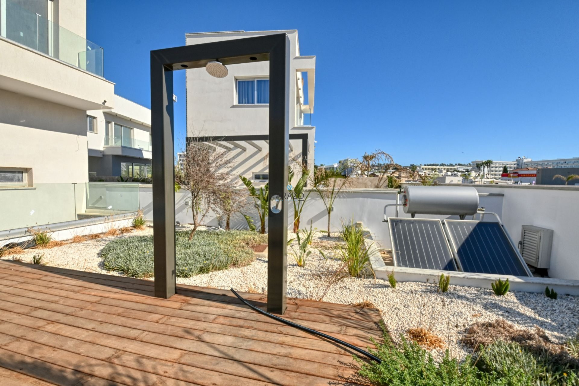 A roof garden was created for amazing evenings under the stars. To complete the picture, each villa is enhanced with its own private garden with pool and sunbathing deck, pergola covered barbecue area, and of course your private car park.