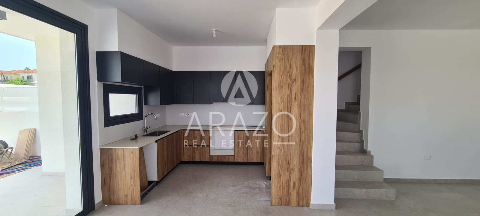 The house on the ground floor consist of an open plan living and dining area which is unified with the kitchen and a guest toilet. On the first floor there are three bedrooms, en - suite shower with a toilet in the master bedroom and a main family bathroom with a toilet. Externally, there is covered parking space for two cars, garden and optional swimming pool.