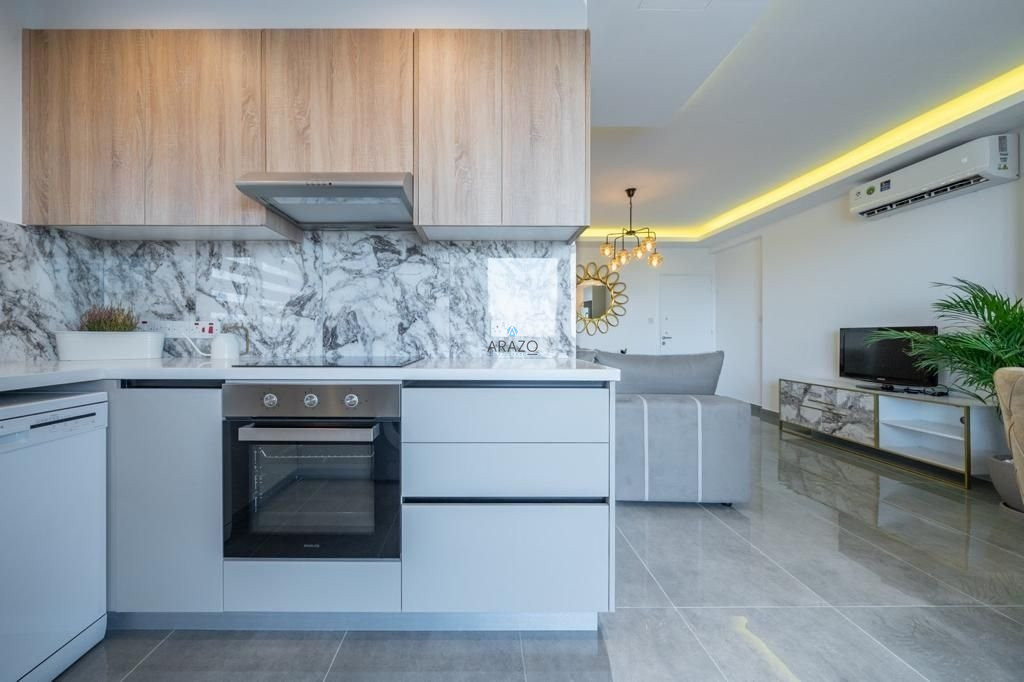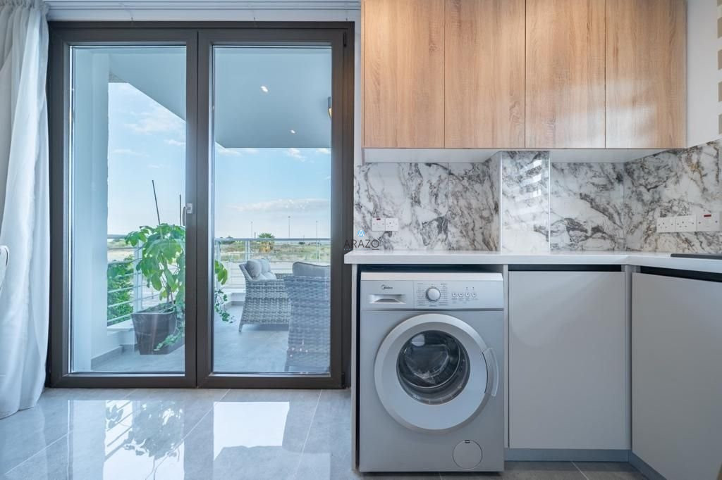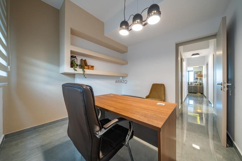 This sea view apartment consists of an open plan living and dining area which is unified with the kitchen, two bedrooms, one office and two bathrooms.