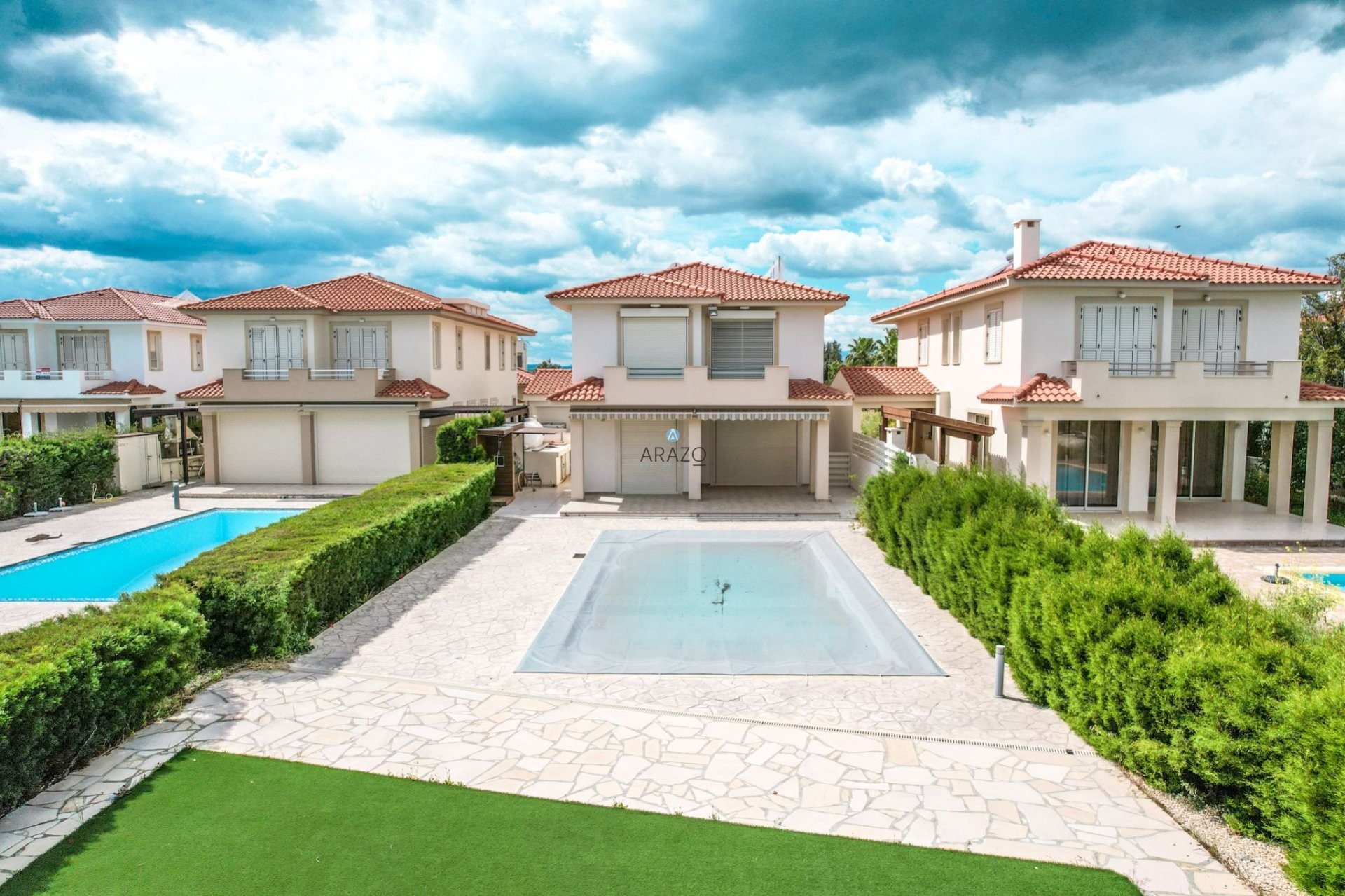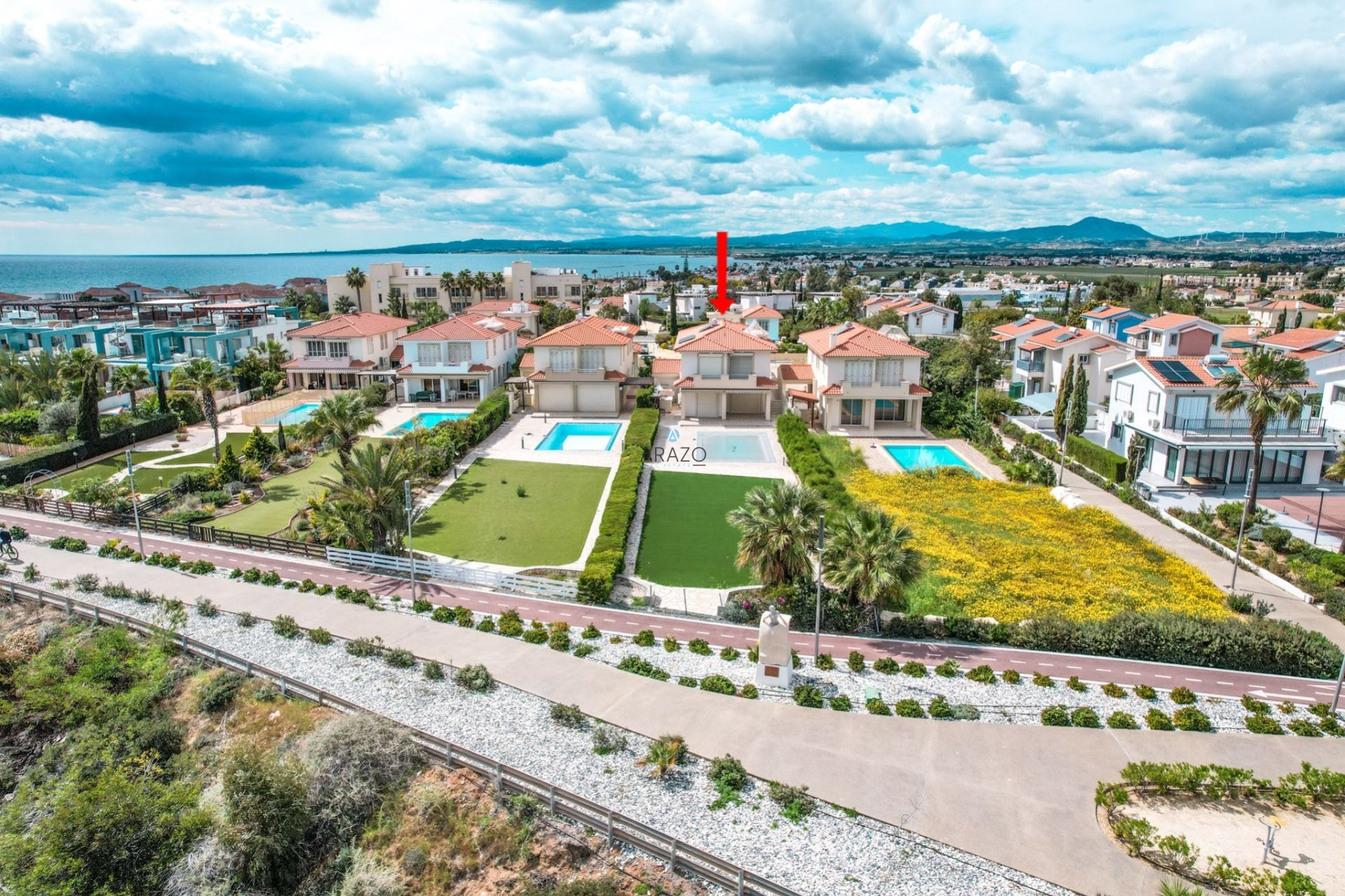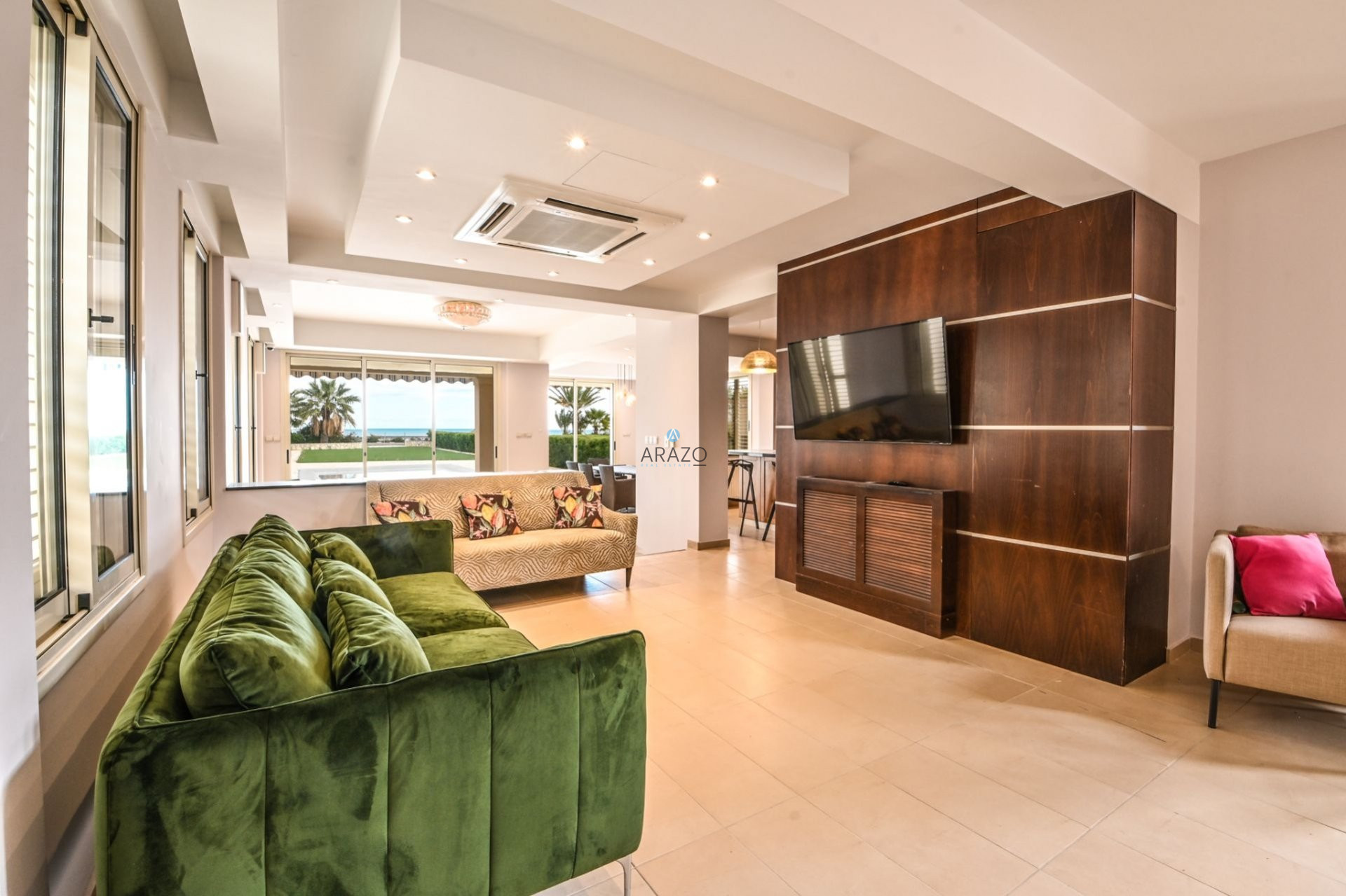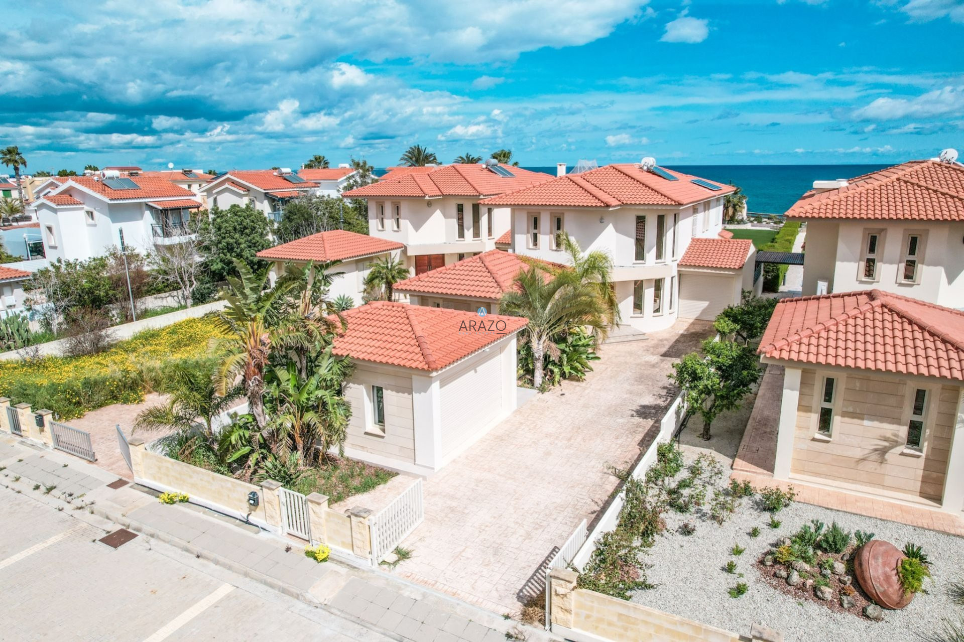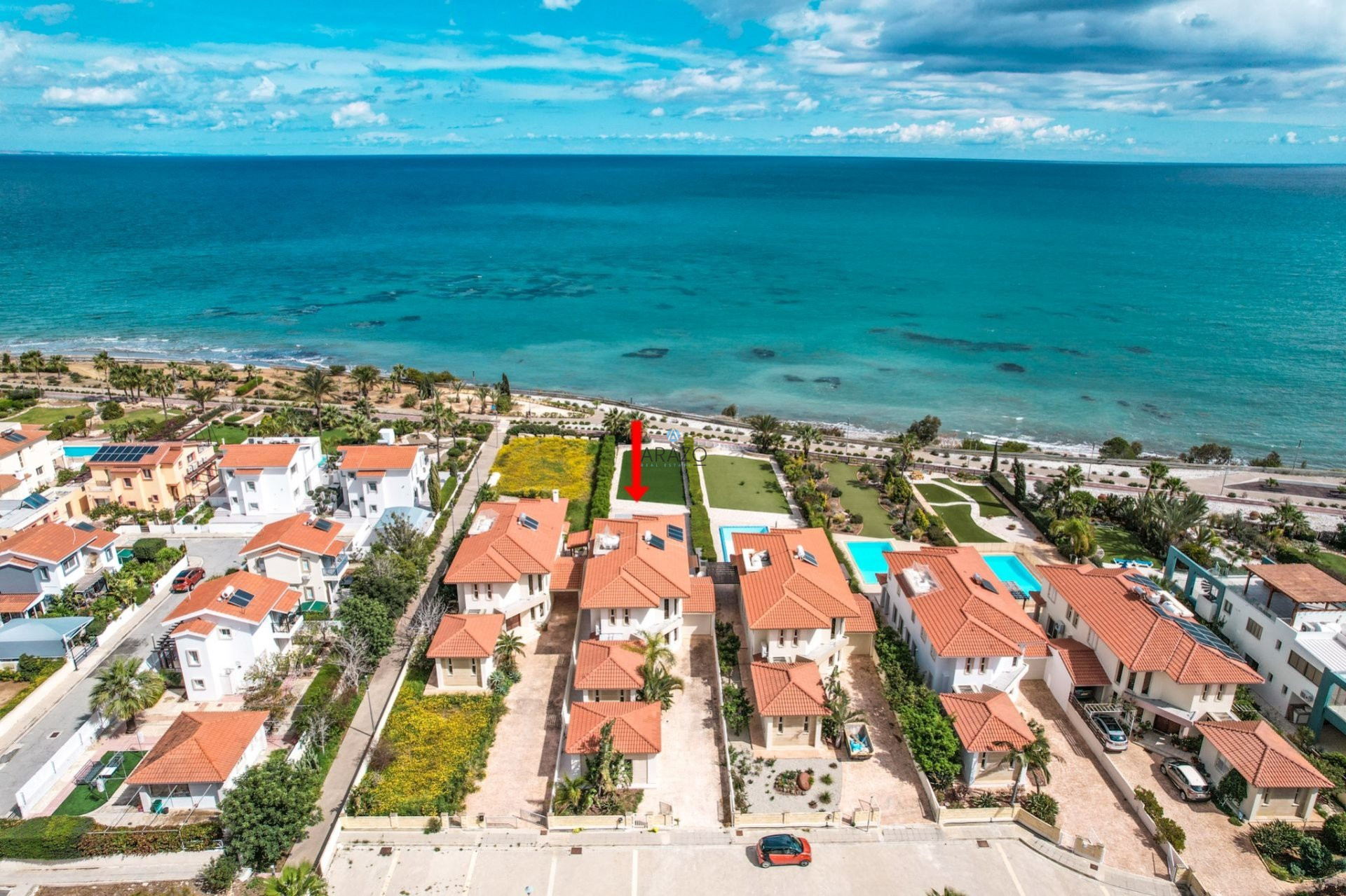 This Detached Villa is situated on the east coast of Cyprus in the Larnaka district-Pervolia, 15 minutes from the city center and only 10 minutes from the International Airport. The Detached Villa is on the beachfront with amazing panoramic sea views. It is part of an exclusive gated community.