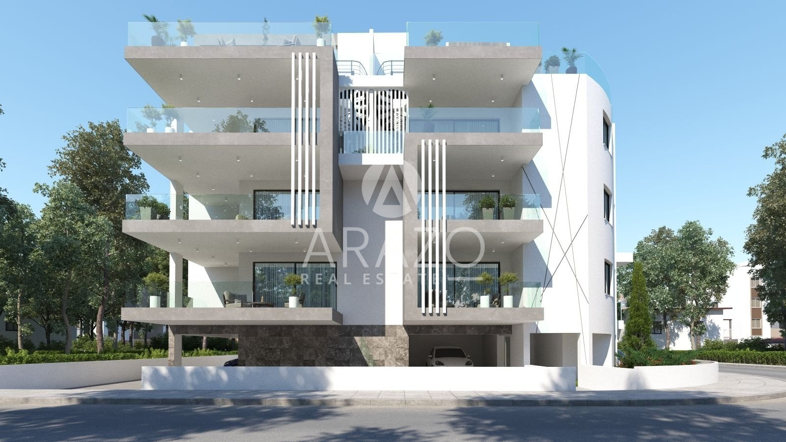 The modern design of the apartment building emphasizes detail and ensures the privacy of the residents. It is a three-story building with comfortable and modern apartments. The first and second floors consist of two two-bedroom apartments and one three-bedroom apartment. The third floor has three two-bedroom apartments, with an additional separate Roof Garden for each apartment. There is covered parking and a storage area for each apartment. The project arises from the coordinated design of an experienced team of architects, civil engineers, and interior designers.