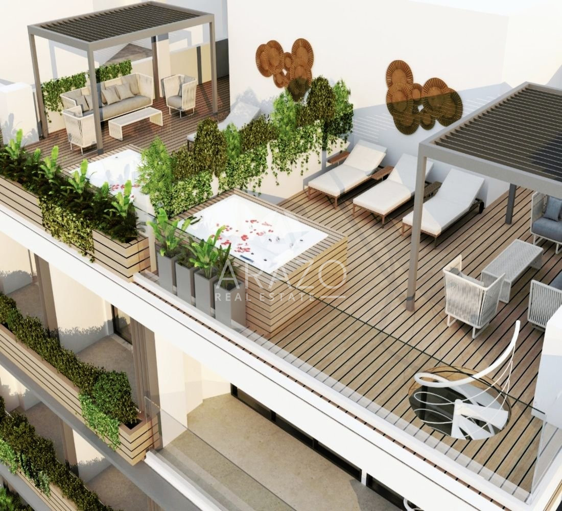 15 studios (type A & B) and 4 two bedrooms apartments + 1 two bedrooms penthouse. The studios consist of an open space living room and kitchen; 1 bathroom and 1 balcony. The two bedroom apartments consist of an open space living room and kitchen: 2 bedrooms and 2 bathrooms and a balcony and roof top terraces for the penthouse.