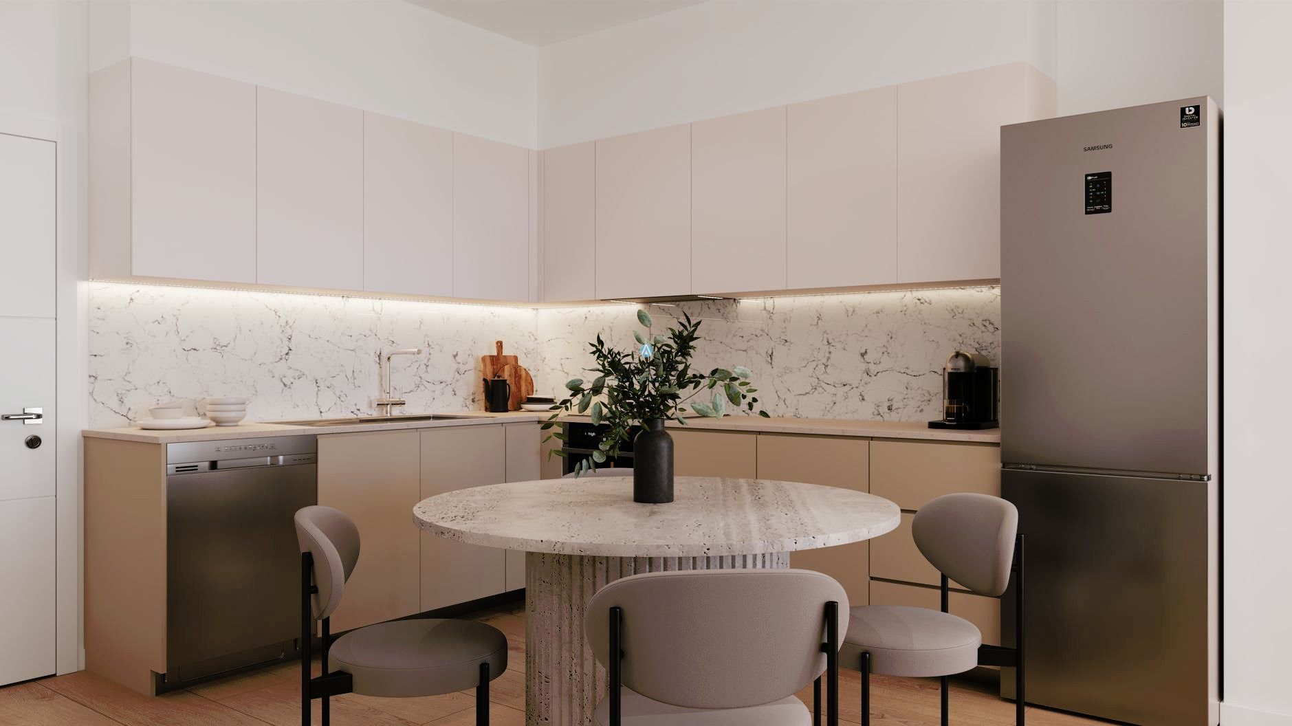 Enclosed within a gated community, the development offers a harmonious blend of 1, and 2 bedroom apartments, each crafted with modern sophistication. With Energy Efficiency rated A, this is not just a beautiful space but also a responsible one. The kitchen boasts soft-closing cabinets mechanism and natural granite counters, while the bedrooms offer ample storage with floor-to-ceiling wardrobes. Security is a top priority, with a security entrance phone for peace of mind. Choose the parquet floor option for added elegance and take advantage of the solar panels for water heating and water pressure system for a more sustainable lifestyle. The concealed A/C units and smart home provisions complete the picture, offering ultimate comfort and convenience. Live in a space that is not just stunning, but also operates at the highest level of efficiency.