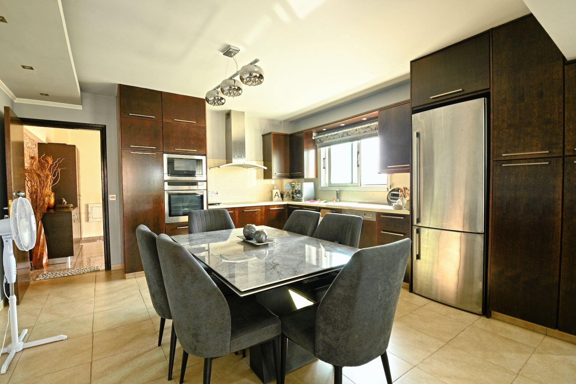 - Combined kitchen and dining area