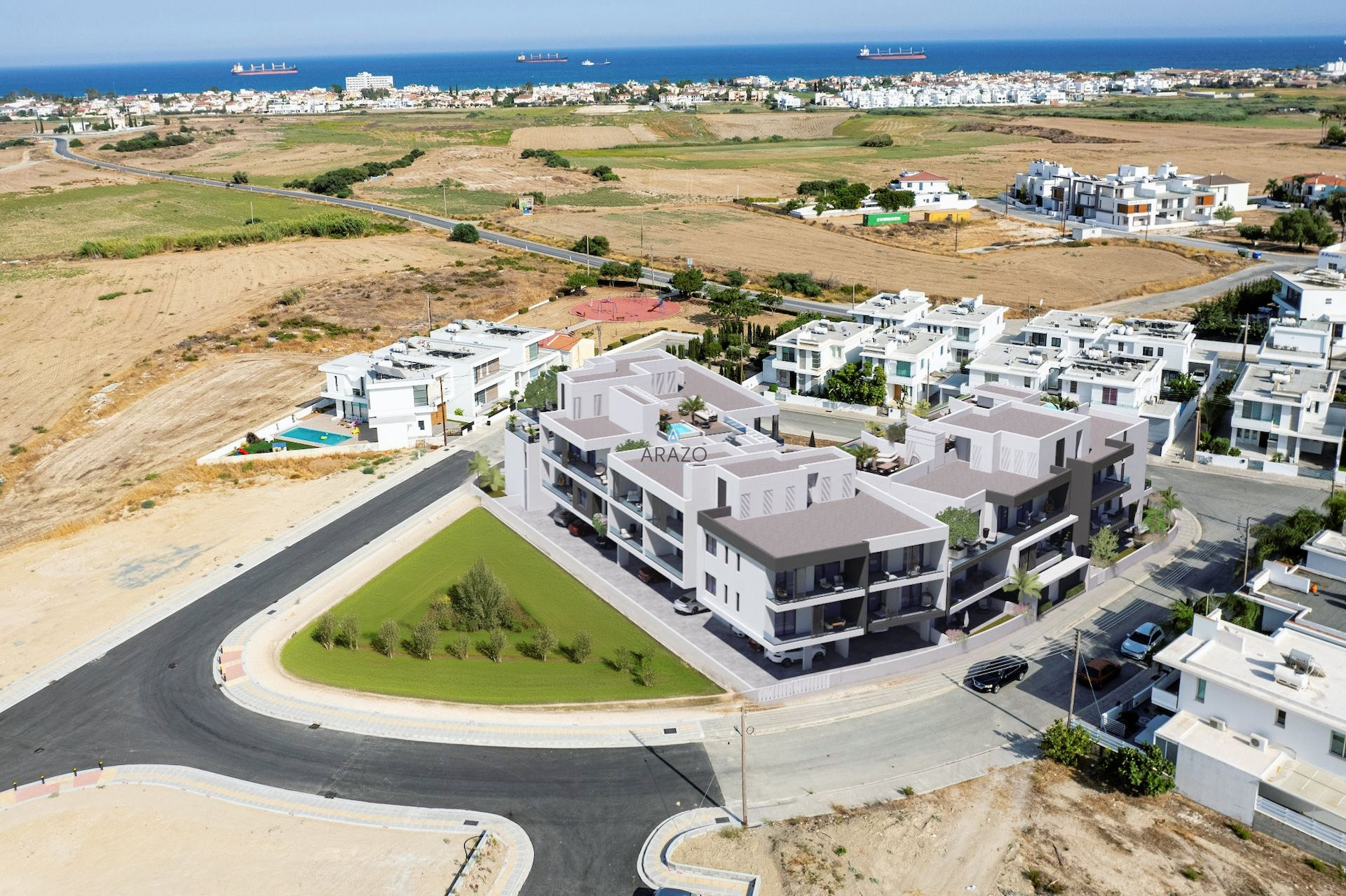New development located in Livadia, Larnaca near to The American University of Cyprus (AUCY). A prestigious and unique residential building featuring 1, 2 & 3 bedroom of spacious apartments and penthouse apartments with roof terraces, jacuzzi and swimming pools. Will consist of a common swimming pool as well and gym for fitness facilities. The project is strategically located, nearby local amenities with attractive prices, ideal for families and close to the sea.