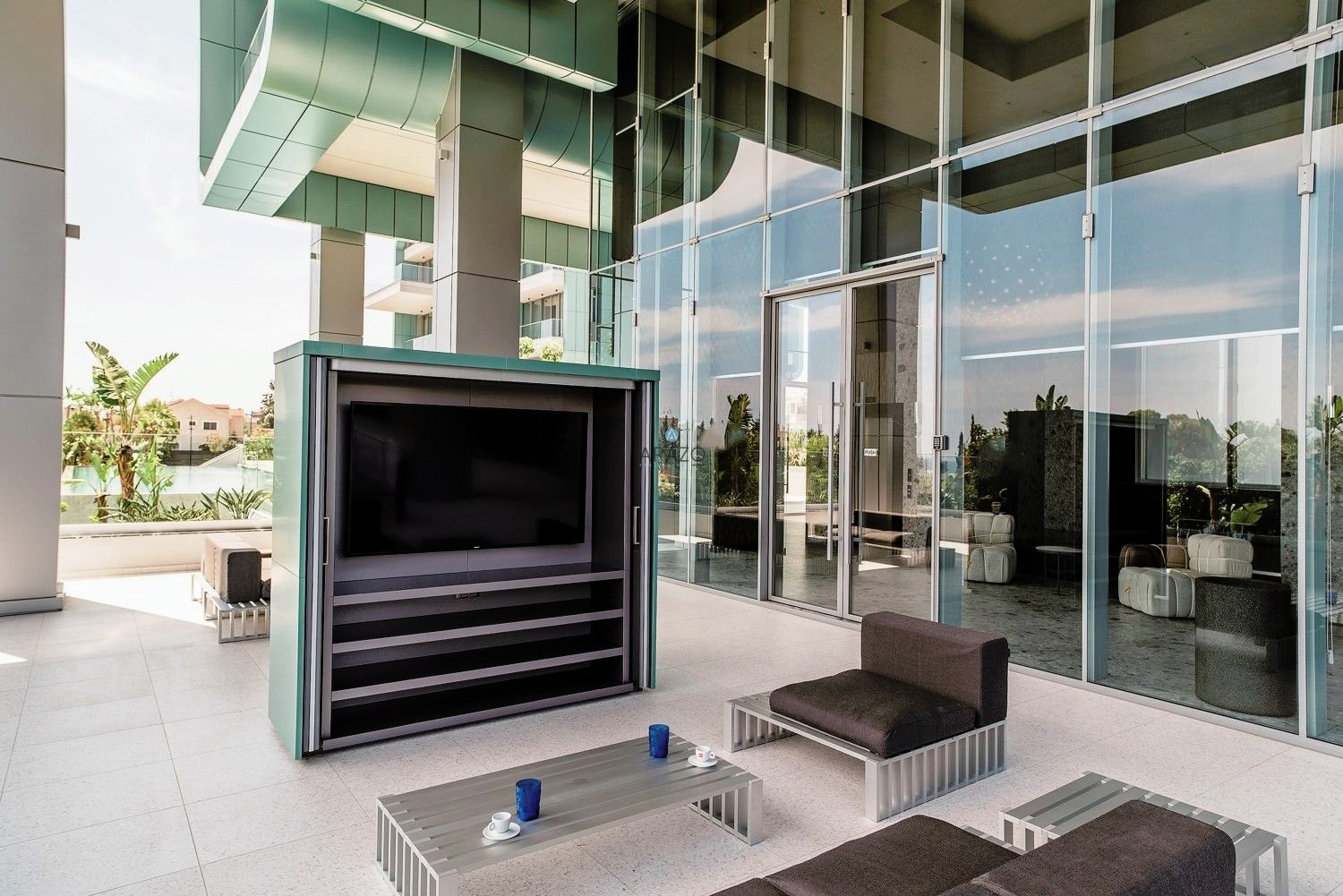 This stunning tower is located near the beachfront road opposite Cyprus Sailing Federation (KIO), behind of Limassol Pearl Building.