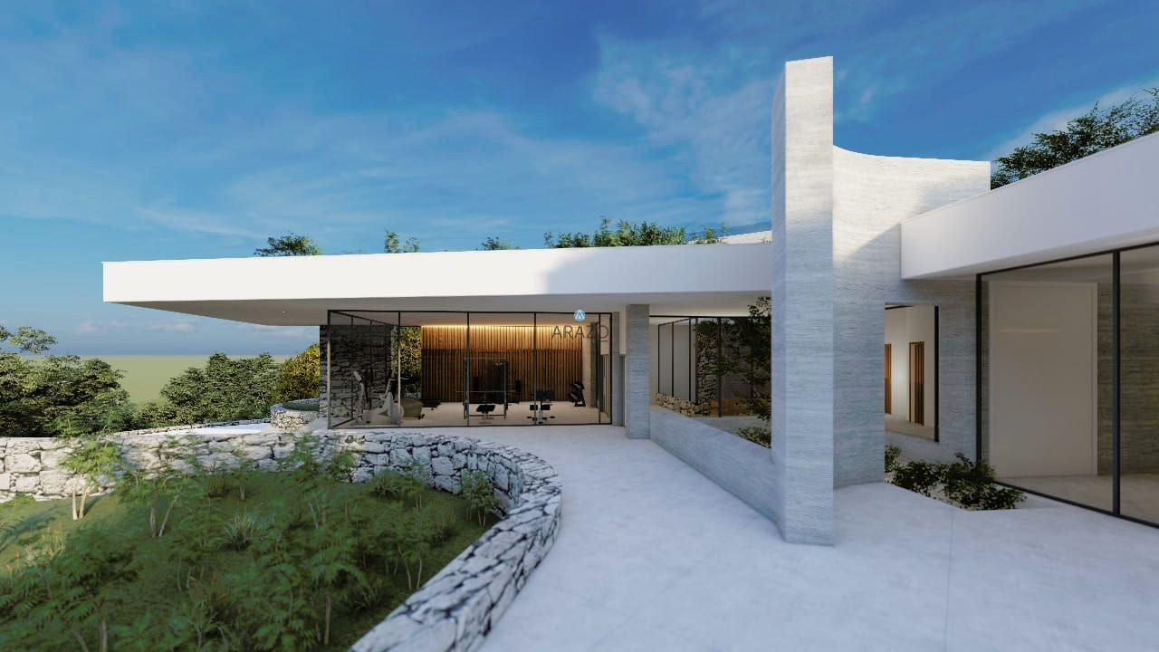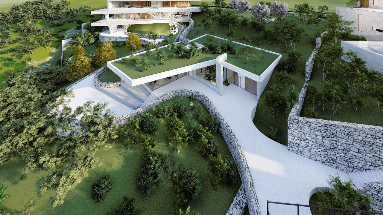 The architecture of the villas copies the outline of the plots themselves thus pointing out the uniqueness of the project. Interior and exterior areas run into one another as well as into the magnificent views, blending with each other, architectural landscapes and volumes. None of the houses look alike. The architectural sleek design of the villas conveys the location relevance of each of them. Swimming pools with infinity edge waterfall outline the spectacular sundecks and barbeque areas, which are carefully positioned to suit an array of entertainment and relaxing atmosphere. Comfort and privacy of your living are guaranteed even by the shape and location of the plots. For example, you may enter your villa through an intimate entry; take the elevator down to the living quarters and open up to a limitless view that shall embrace you along with the carefully selected landscaped garden and a sea-facing infinity swimming pool.