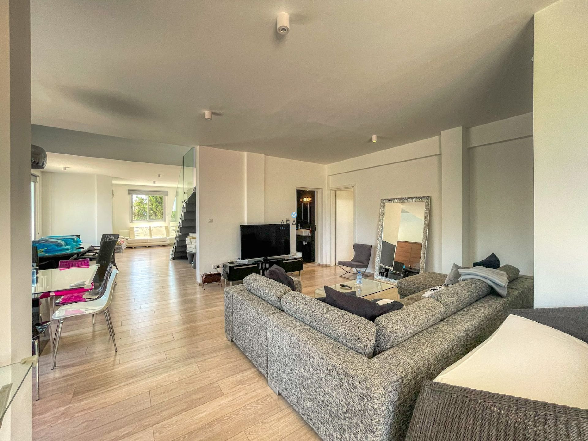 For sale is a stunning detached villa located in the picturesque area of Cape Greco. This resale property offers an impressive internal space of 195 m2, featuring five spacious bedrooms and three modern bathrooms, making it perfect for families or those seeking extra space.
