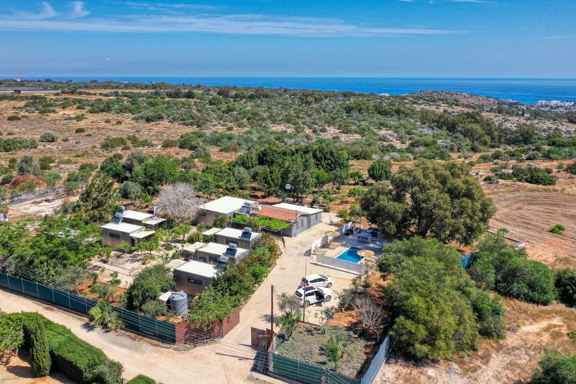 Nestled in the serene hills of Cape Greco, this cozy 25m² studio apartment is perfect for a peaceful short-term getaway. Set within a secure gated residence of 6 studio apartments, it offers privacy, tranquility, and comfort in an idyllic natural setting.
