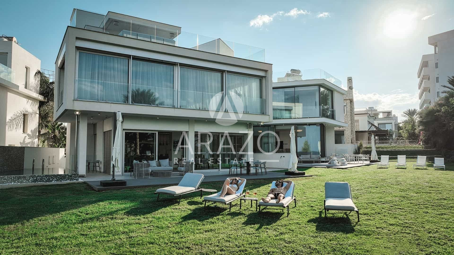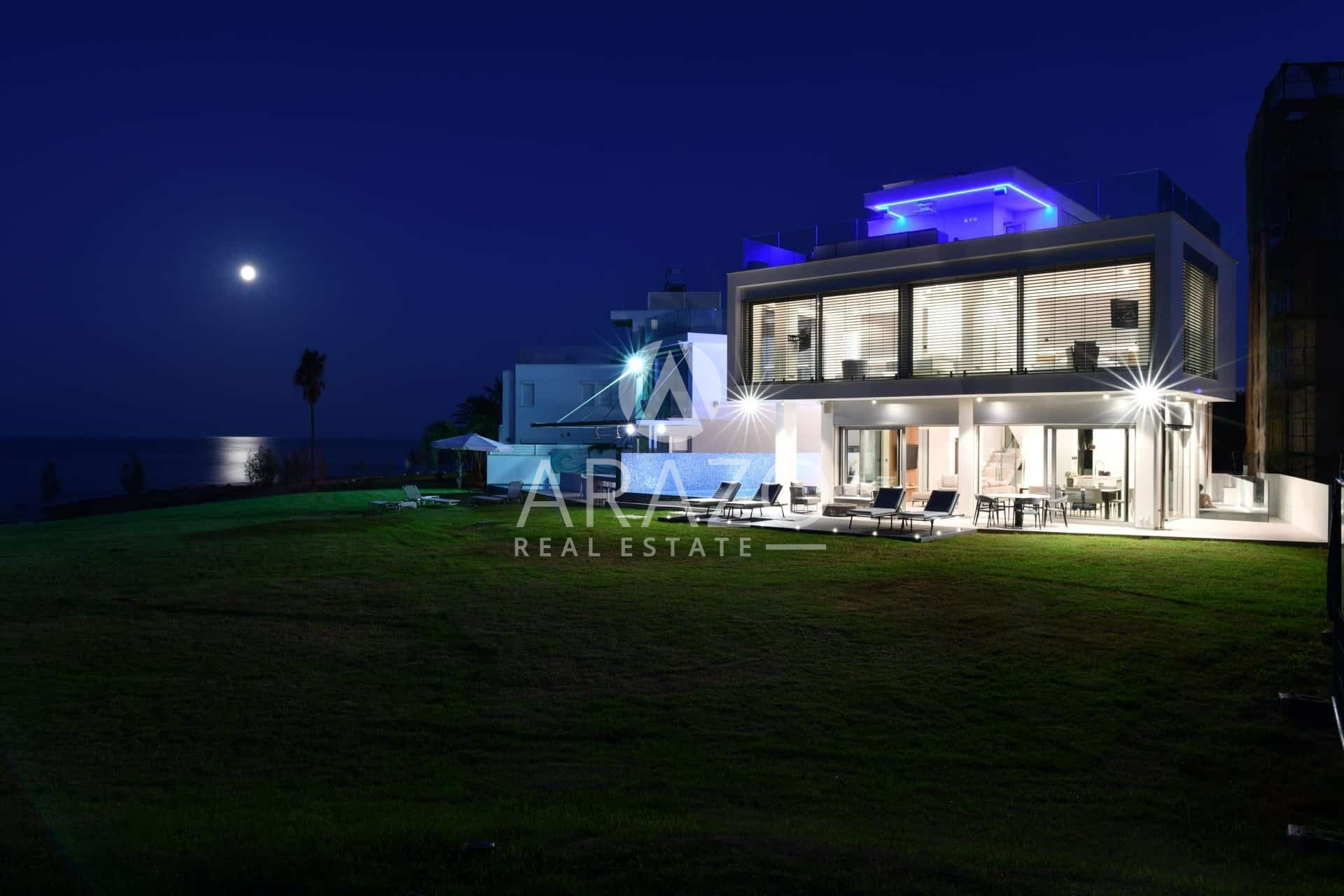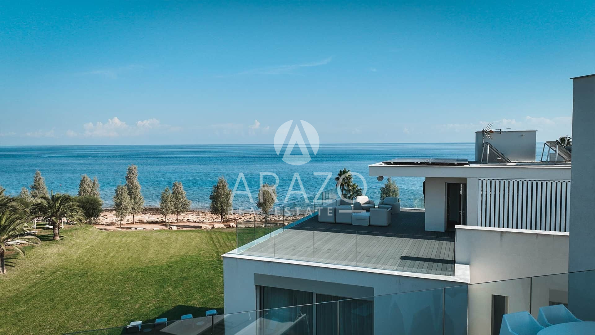 Villa Zeus includes a private roof terrace 135 sqm that offer the most amazing panoramic views of the coastline, where you can sit relax or enjoy an amazing movie night under the stars. The roof includes a second fridge and a refrigerator and a guest bathroom.