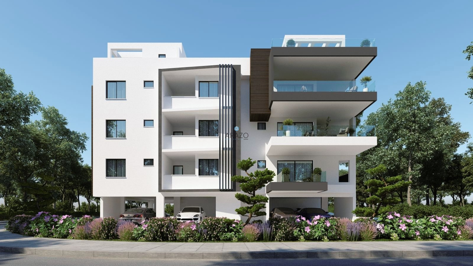 The project boasts 9 apartments, 1 bedrooms and 1 bathroom, 2 bedrooms and 2 bathrooms and 3 bedrooms and 2 bathrooms– all with spacious and contemporary living areas. There are three apartments per storey – ensuring optimum privacy for potential buyers. The two third floor apartments benefit from individual private and luxury roof-gardens with amazing views of the lovely Neighborhood. Each apartment has one parking bay and a storage room on the ground level.