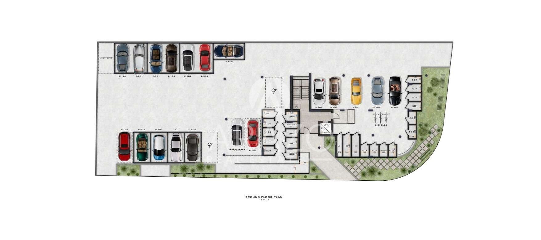 The project boasts nineteen apartments two bedroom & two bathroom apartments – all with spacious and contemporary living areas. There are four apartments per storey on 1st floor and 4th floor and 3 apartments per storey on 2nd, 3rd, 5th and 6th floor – ensuring optimum privacy for potential buyers. The eight floor apartments benefit from individual private and luxury roof-gardens with amazing views of the lovely neighborhood. Each apartment has one parking bay and a storage room on the ground level.