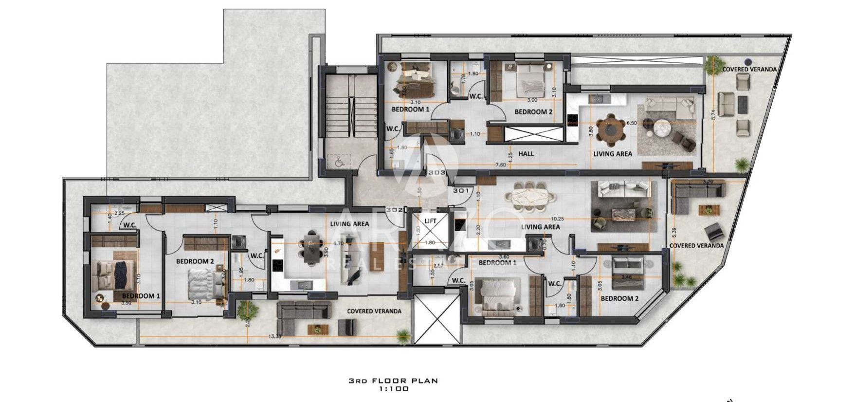 The project is located opposite the new Larnaca Land of Tomorrow, next to Jumbo Larnaca, within walking distance to the beach, near supermarkets, and private universities such as the American University of Larnaca. It also offers immediate access to highways leading to Nicosia, Limassol, Paphos, and Ammoxostos. This makes it a great opportunity for investors.