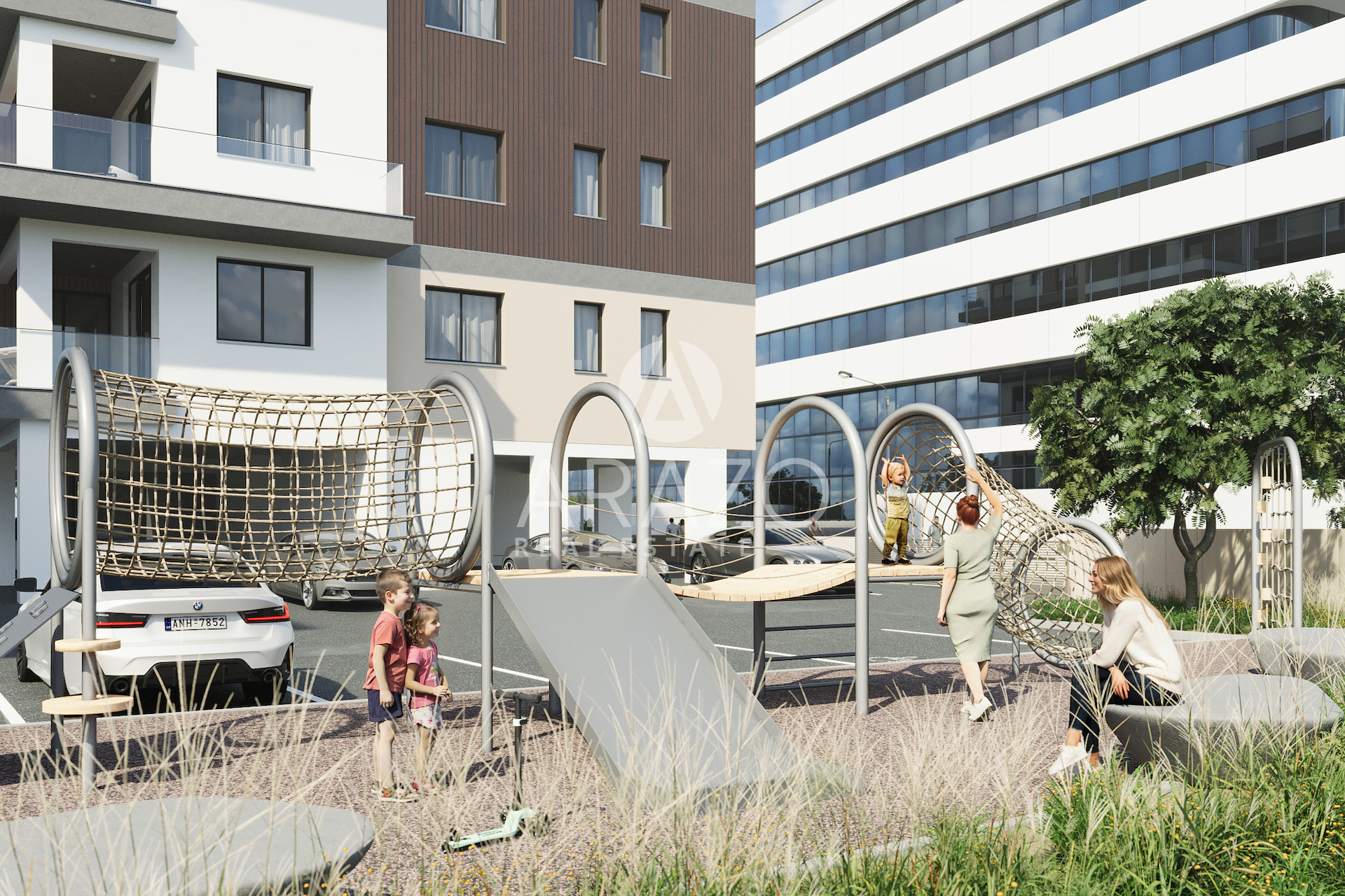 Each property comes with its own parking space and storage room, providing added convenience and security. Additionally, the project includes a well-equipped children's playground, making it an ideal choice for families.