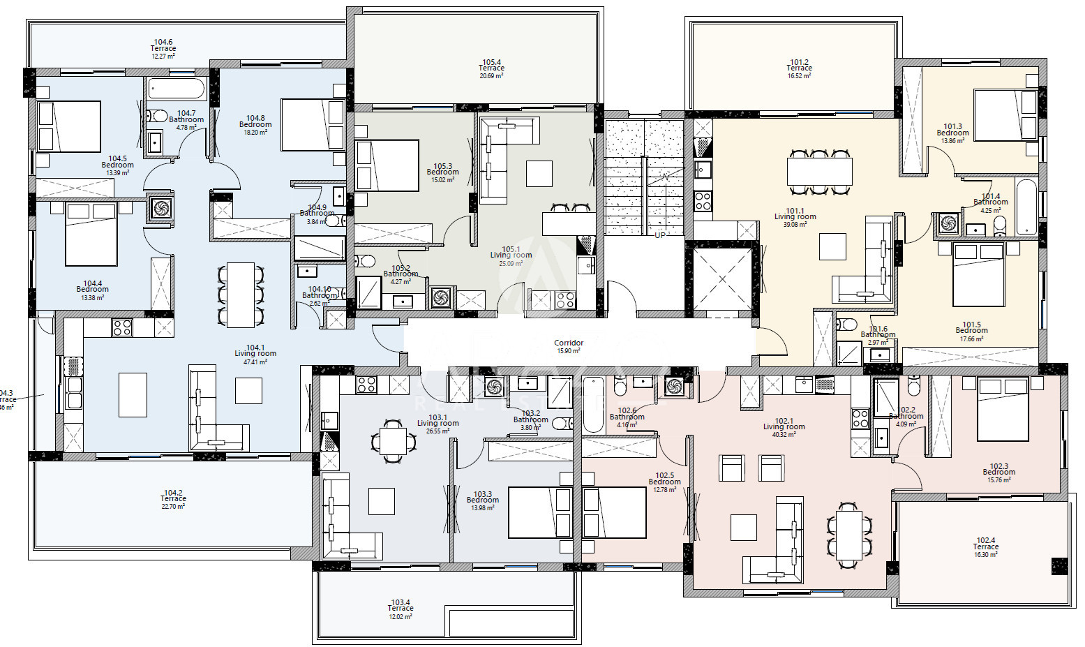 The residence offers a selection of 20 exquisitely designed one-, two- and three-bedroom apartments. Spanning across four floors, each unit is thoughtfully crafted to provide comfort, style, and functionality. Whether you're seeking a cozy one-bedroom retreat, a spacious two-bedroom home, or a luxurious three-bedroom residence, the residence caters to diverse lifestyles and preferences.