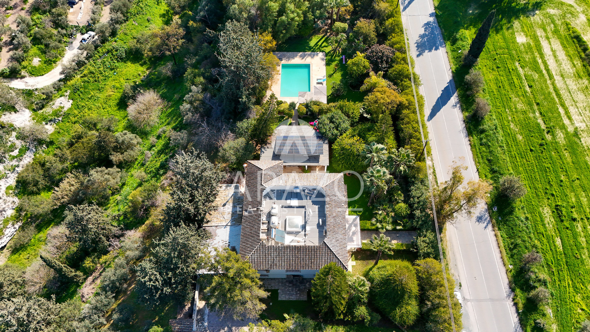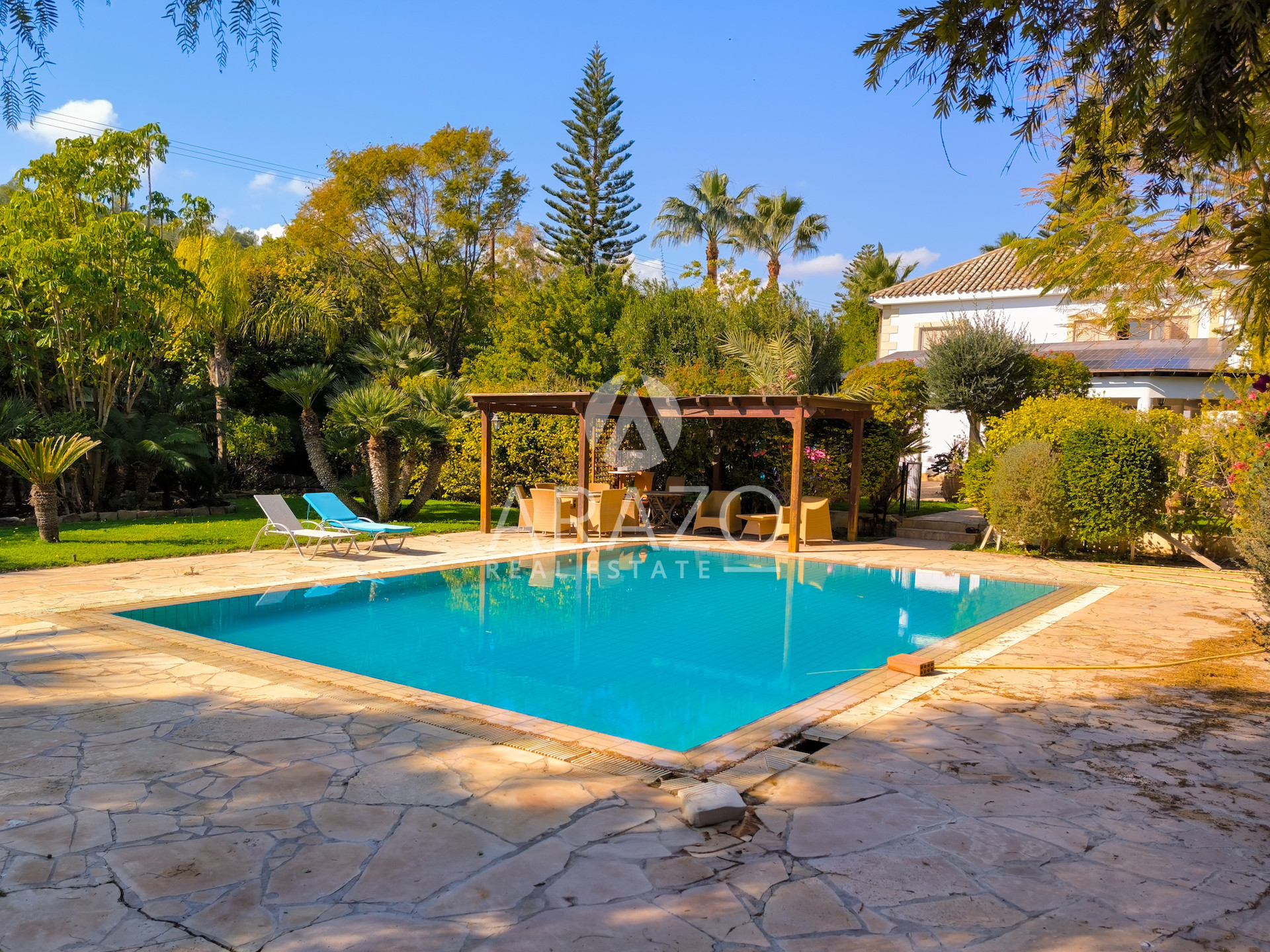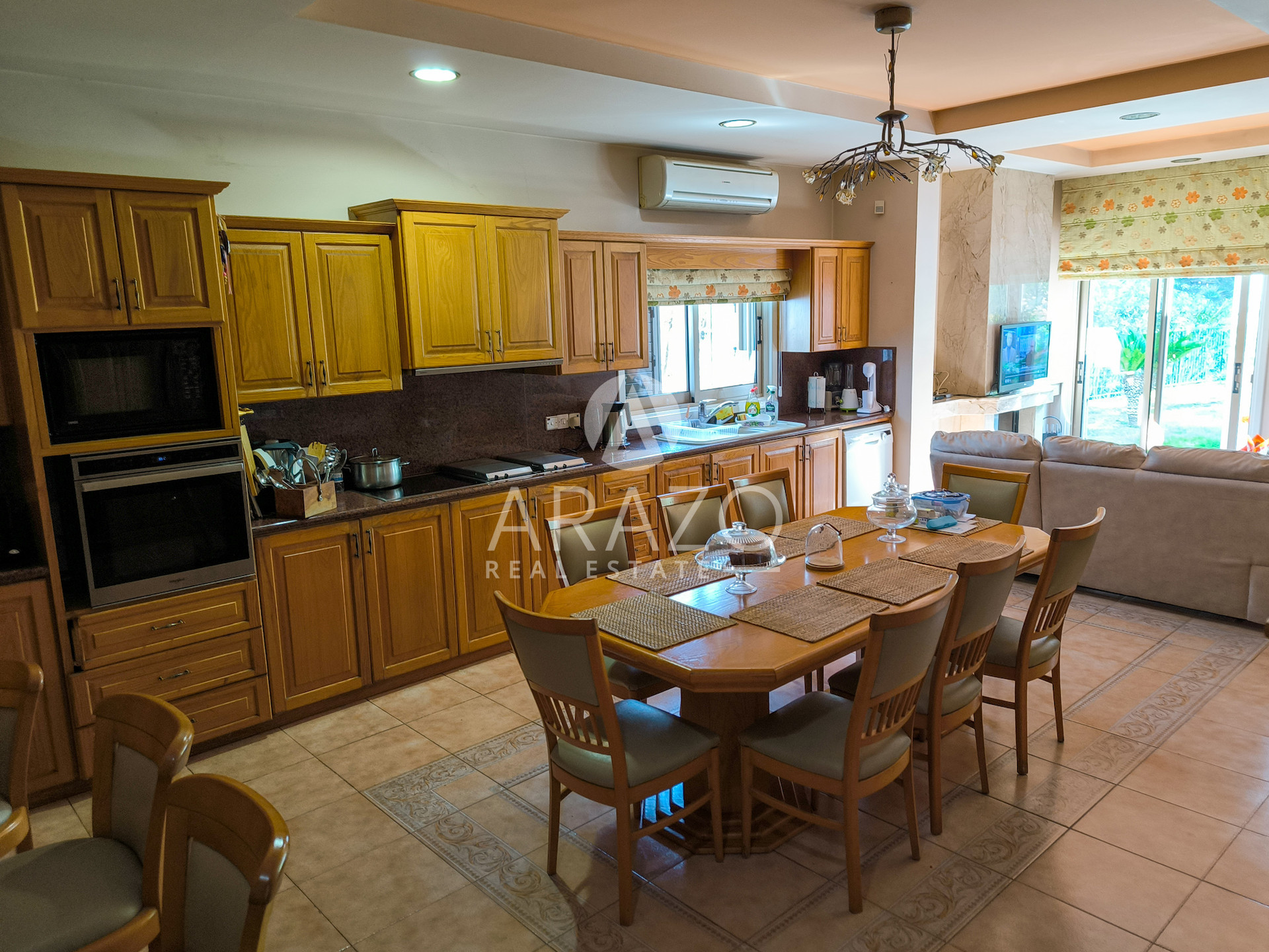 The property sits on a large plot, providing a relaxing environment and ample outdoor space. The property is fully furnished with quality furnishings, allowing you to move in with ease. The villa is equipped with a central air conditioning system to ensure comfort year-round.