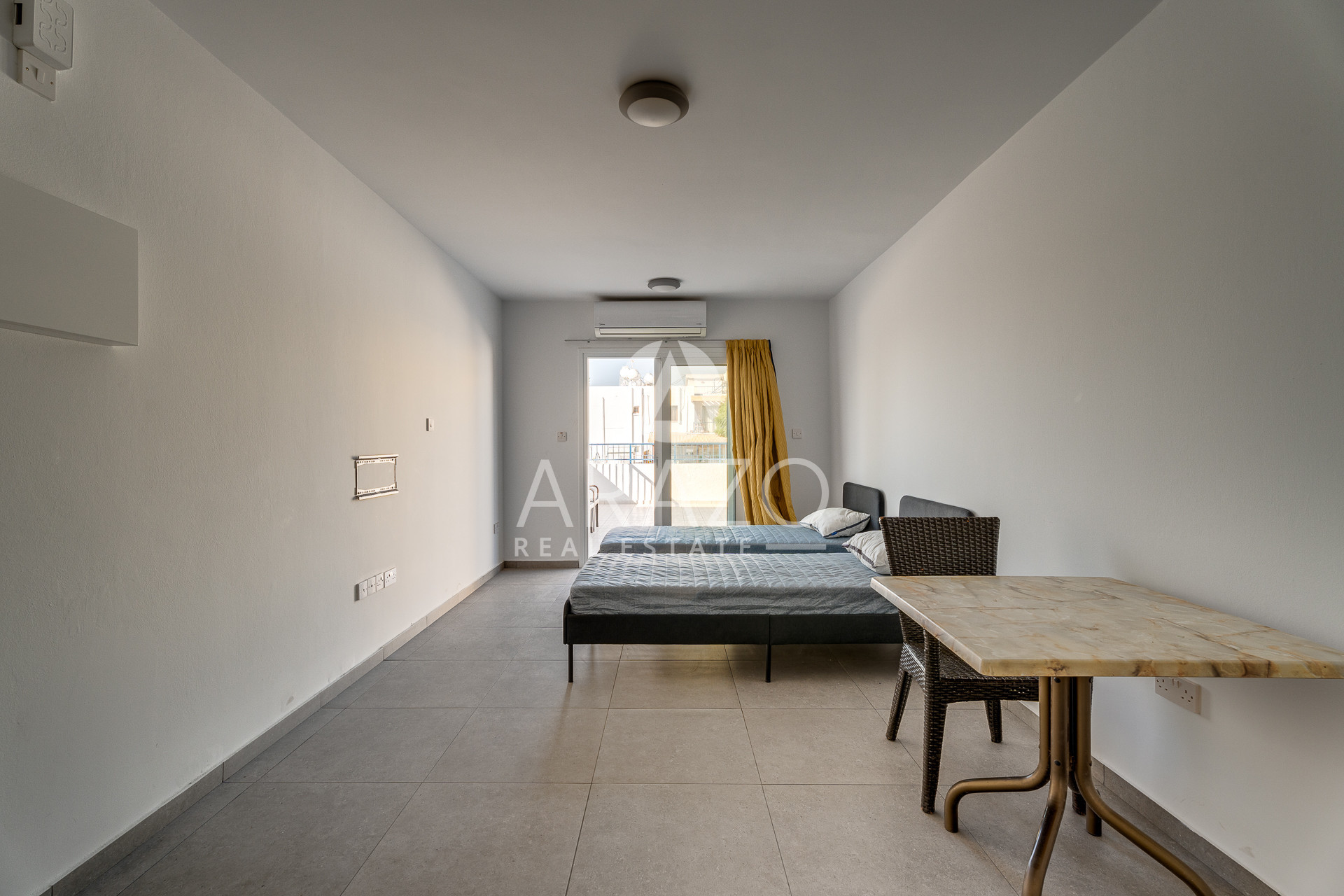 For sale: A bright and welcoming 1-bedroom apartment offering 43 m² of internal space, ideally situated on the 1st floor of a well-maintained 2-floor building in the heart of Ayia Napa. This resale property features a practical layout, including a spacious bedroom, a modern bathroom, and an open-plan living and dining area, providing comfort and convenience in every corner. Large windows invite natural light, creating a warm and inviting feel throughout the space.
