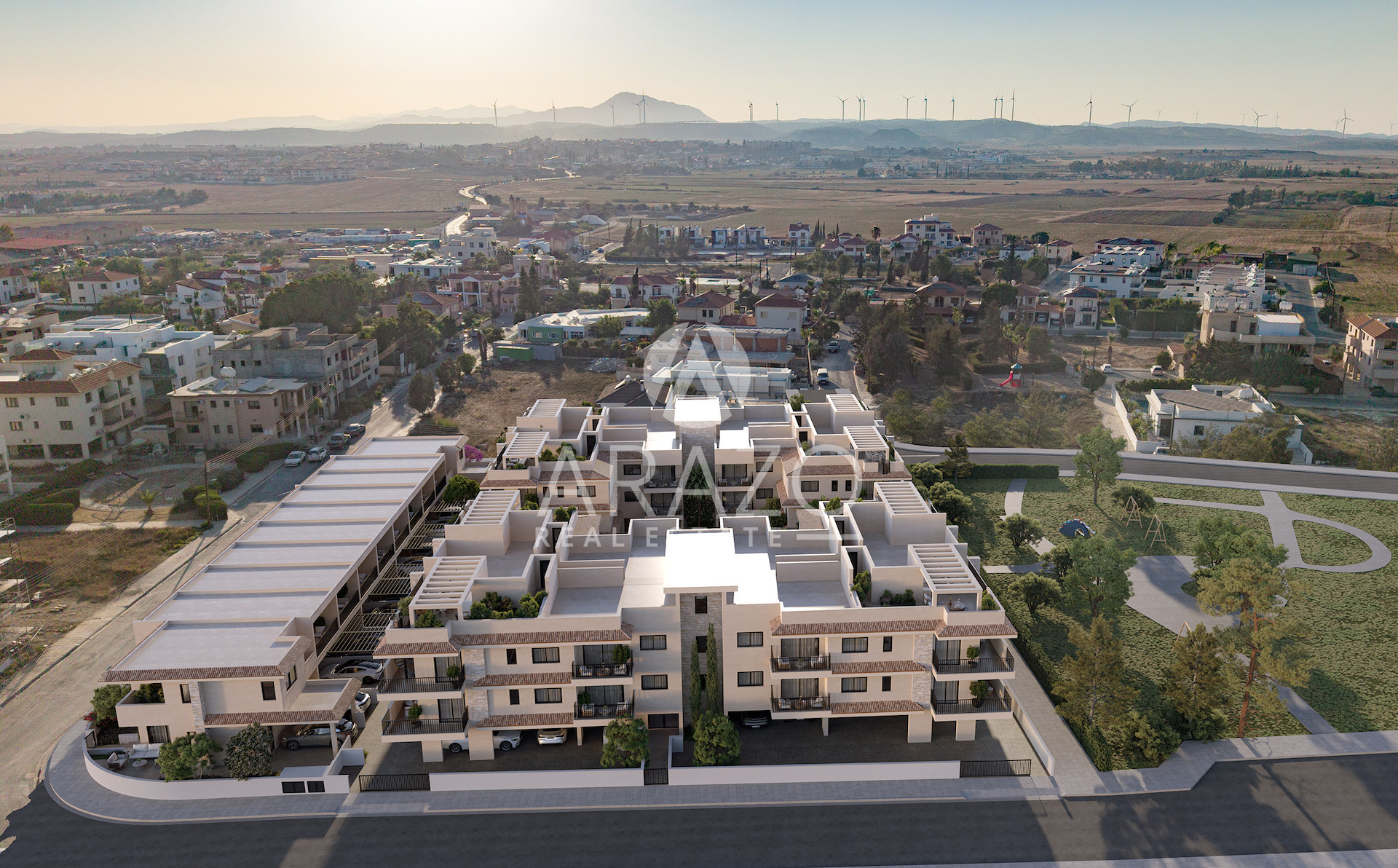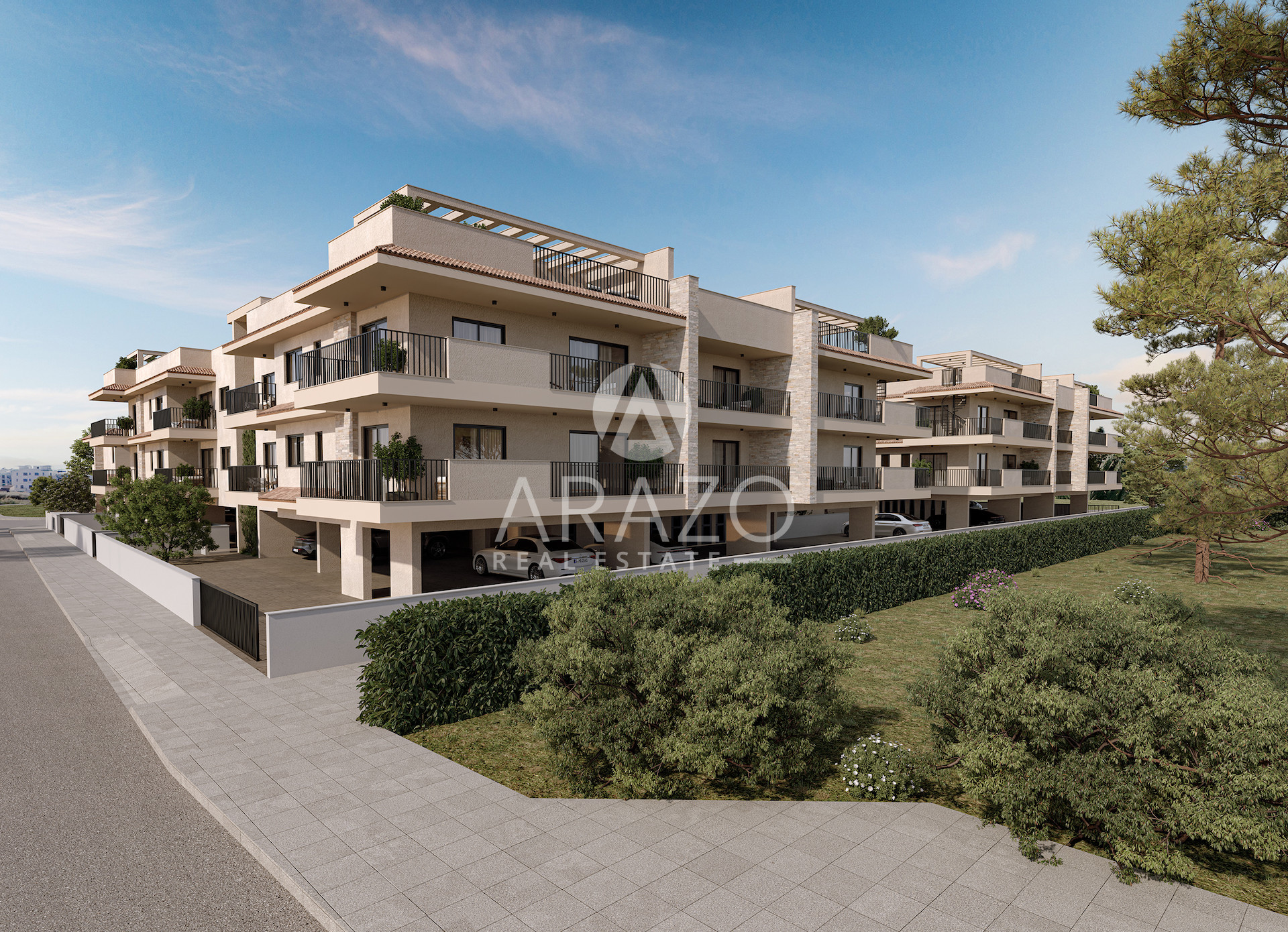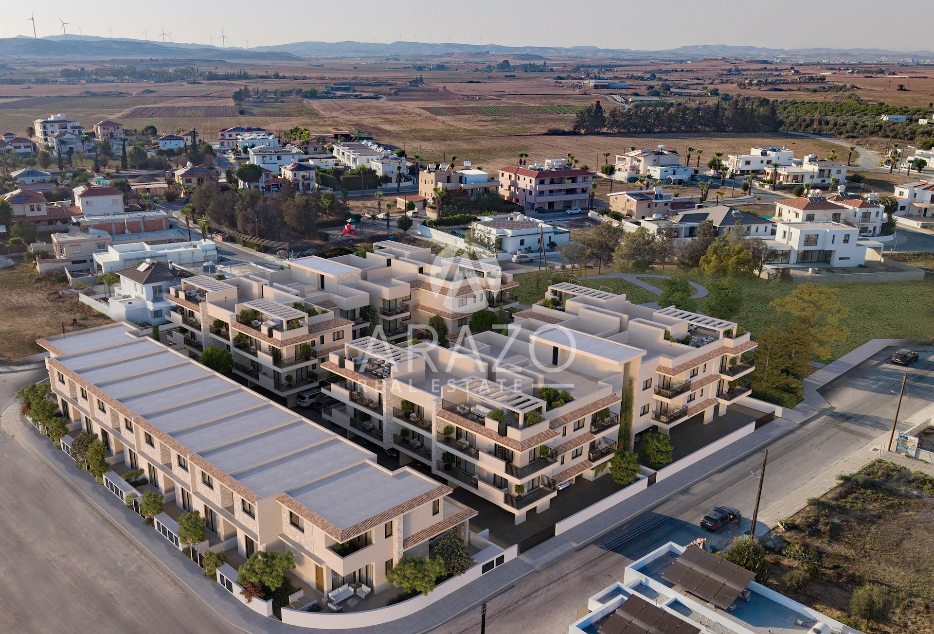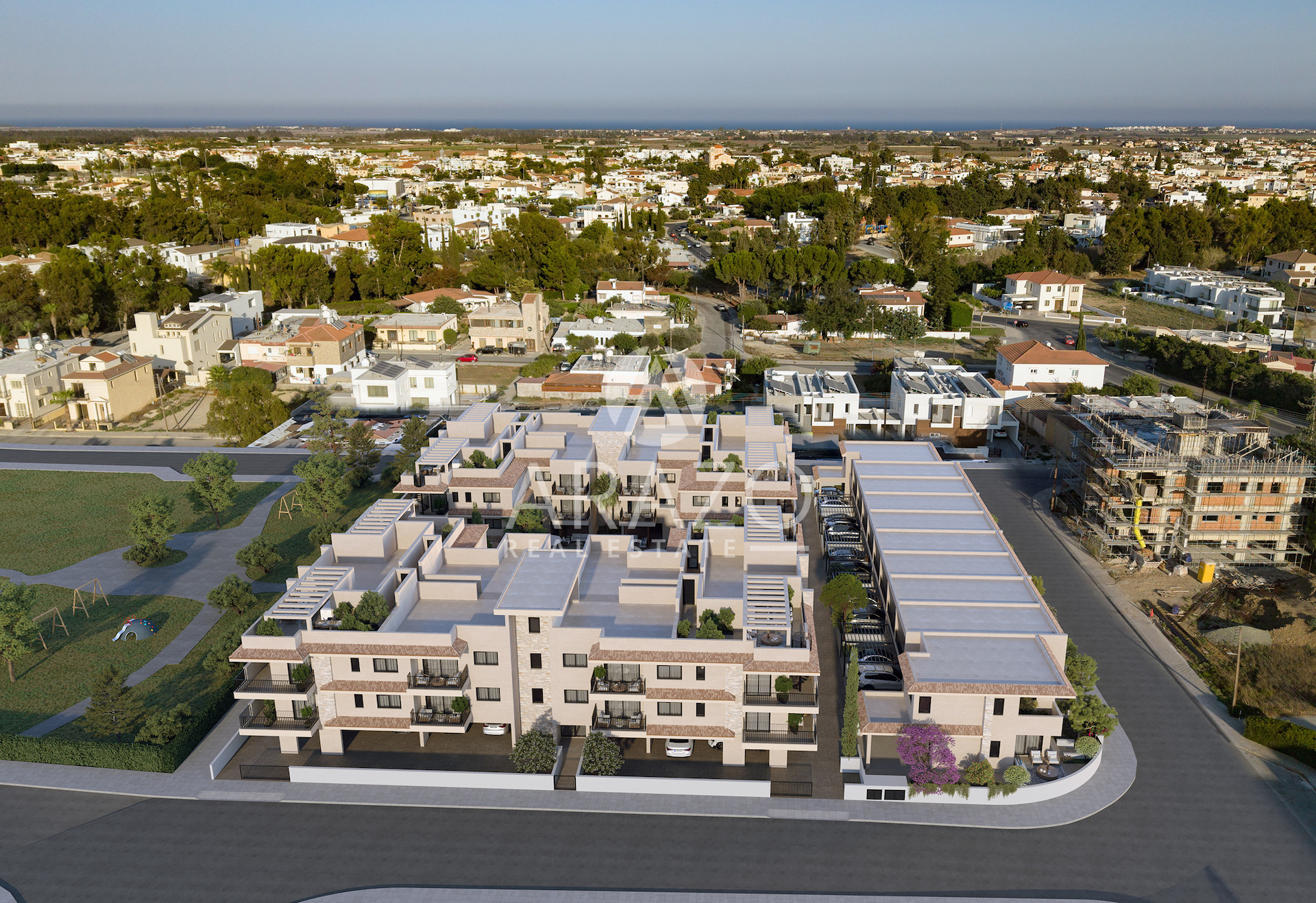 Blending Mediterranean architecture with modern comfort, the project features 50 elegant homes – a collection of stylish apartments, penthouses, maisonettes, and houses – designed to suit every lifestyle. Set within a private neighborhood and next to a large green park, the community offers a peaceful atmosphere surrounded by private residences, yet remains well-connected for both daily living and leisure.