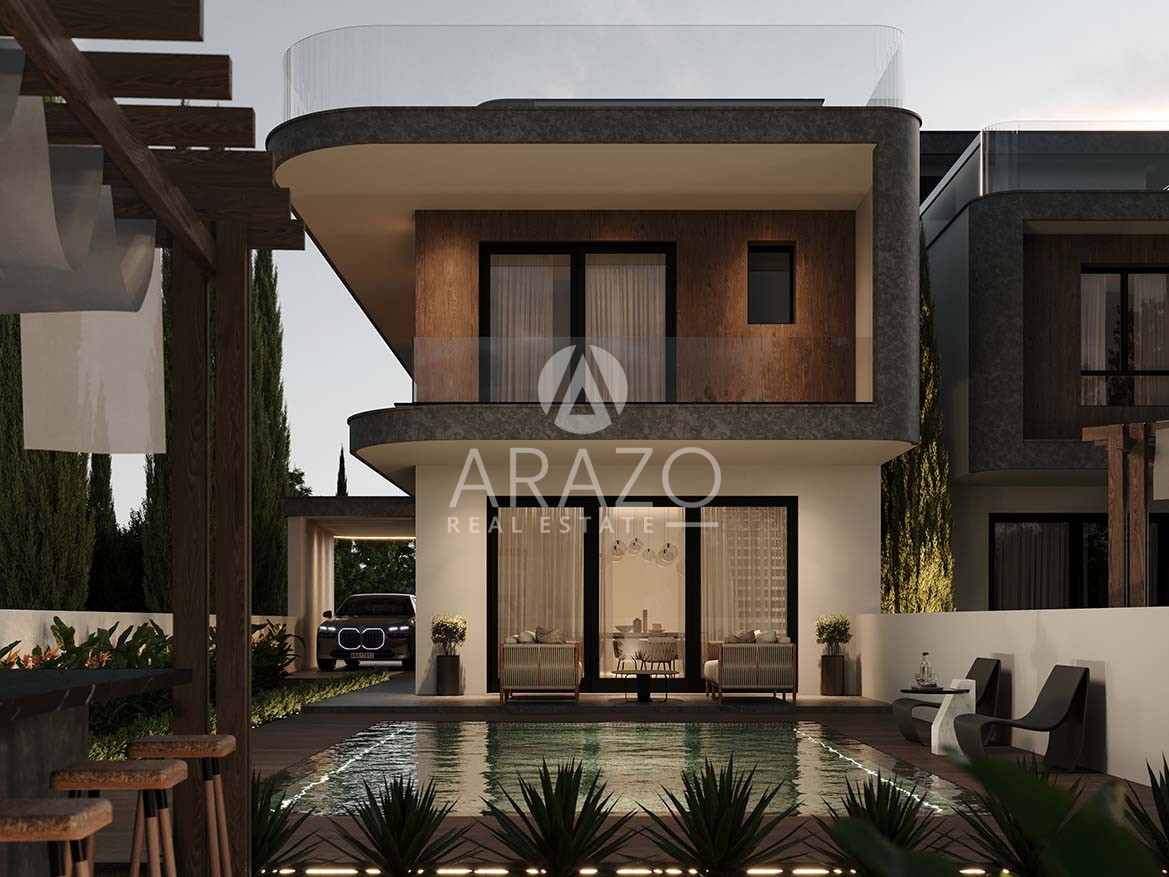 Outdoors, the homes embrace Mediterranean living with landscaped gardens, a dedicated BBQ area, covered parking, and an elegant pool terrace perfect for sunset gatherings. With walking-distance access to main facilities and an optional roof garden, these villas offer a refined lifestyle—equally suited for a private family retreat or a premium investment in Larnaca’s most coveted coastal strip.