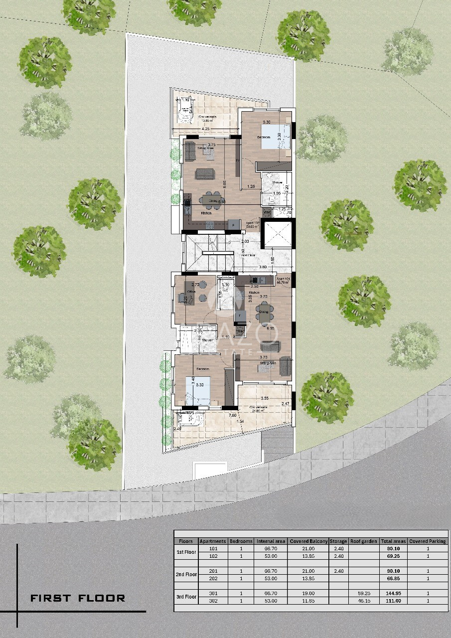 Modern off-plan apartment located in the sought-after area of Livadia. This spacious 1-bedroom, 1-bathroom home offers 53 m2 of comfortable internal space and is positioned on the first floor of a well-designed three-storey building, complete with elevator access for your convenience.