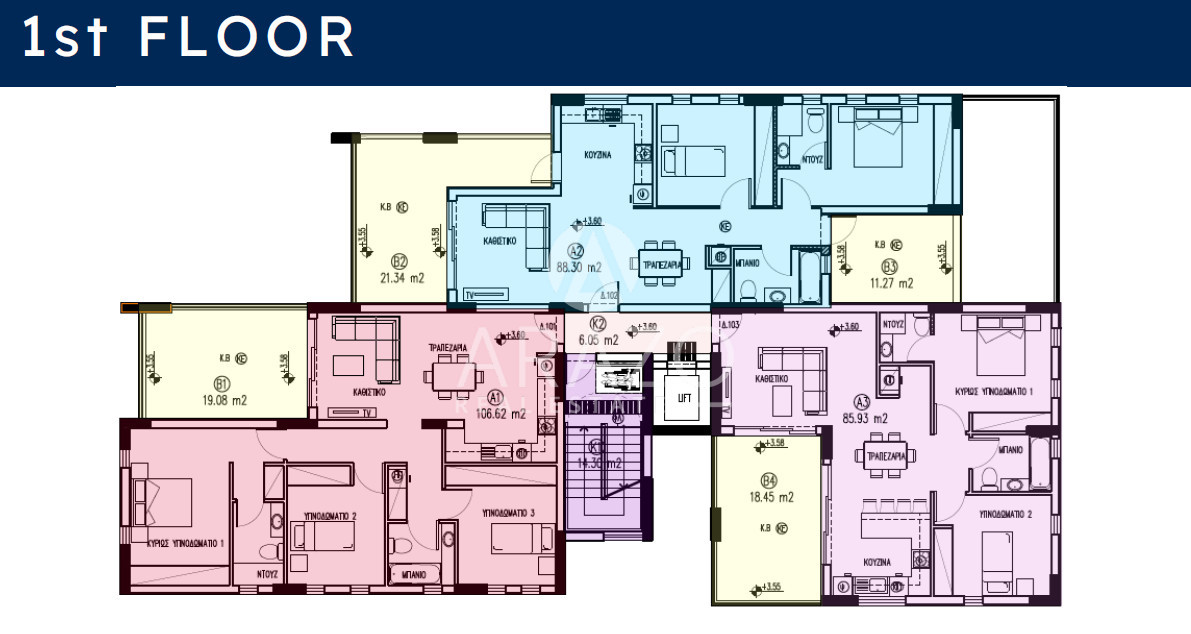 A modern apartment located in the desirable area of Aradippou. This spacious home offers an internal area of 106.62 m² and is thoughtfully designed with three comfortable bedrooms and two bathrooms, making it ideal for families or those seeking extra space.
