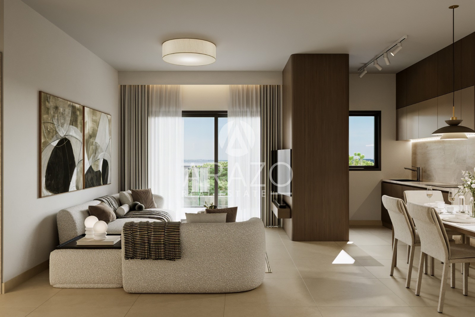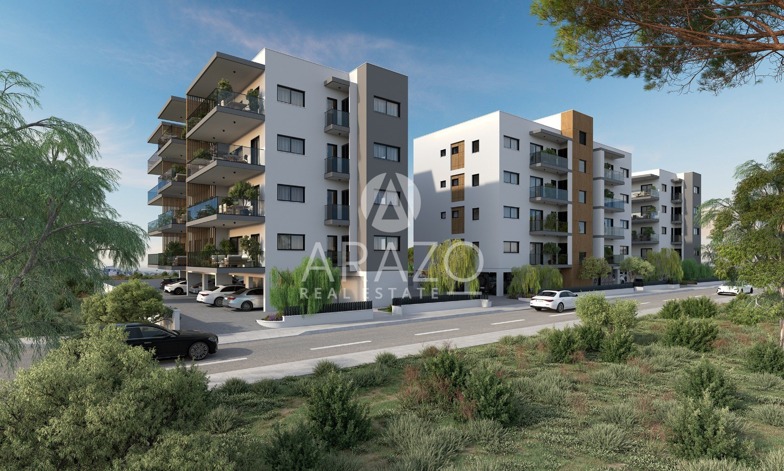 The apartments are designed to offer a modern, effortless way of living—spaces that balance comfort, style and everyday practicality. Large openings, bright interiors and thoughtful layouts create a sense of openness, while covered verandas extend the living space outdoors, blending the home with the project’s green surroundings. Whether overlooking the pool, landscaped gardens or the wider Zakaki neighborhood, each residence brings light, air and calm into every day.