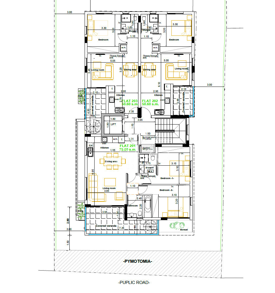 Every apartment features private balconies, individual storage rooms, and covered parking spaces. The penthouses enjoy access to private roof gardens, offering urban views and a serene outdoor space. Ideally located just minutes from the upcoming Land of Tomorrow, the beach, the American University of Cyprus, and all essential amenities, the residence offers the perfect blend of convenience and tranquility.