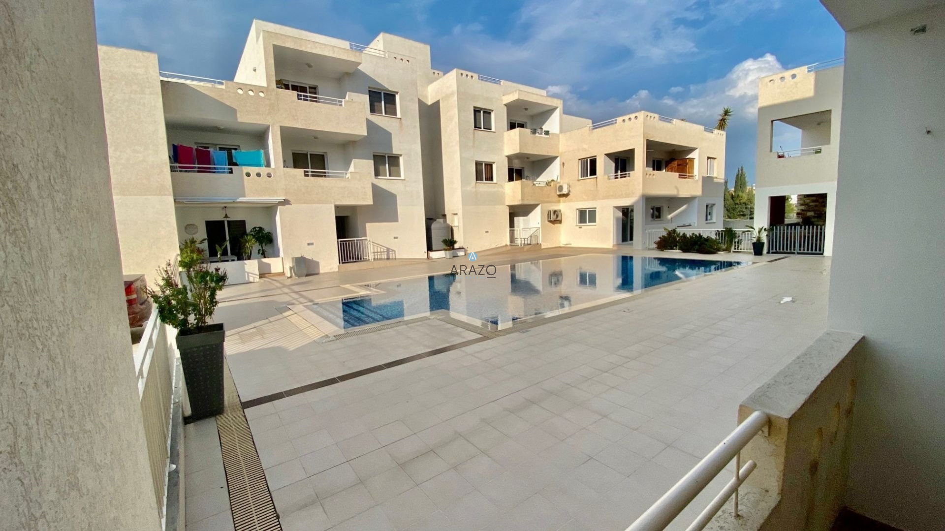 However, there is a covered veranda, covered parking space, two storage rooms and communal swimming pool.